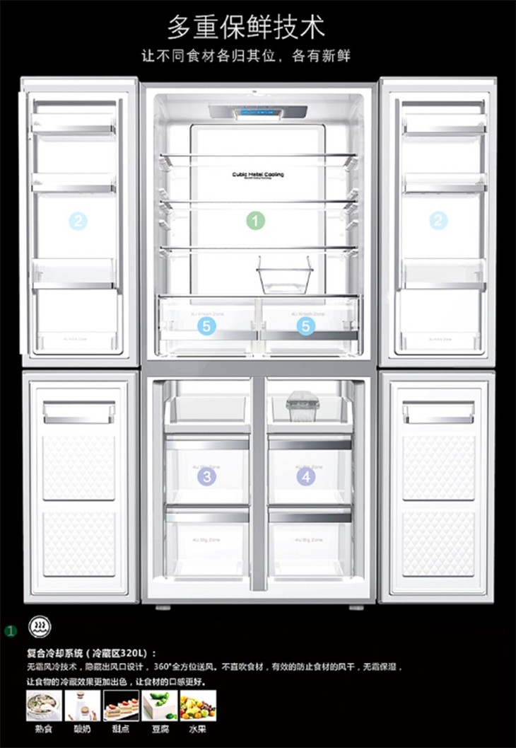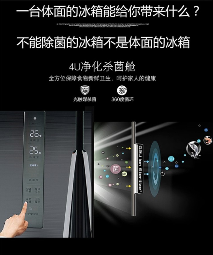 格兰仕(Galanz)470升 风冷无霜 双系统防串味冰箱 BCD-470WTEH 极光银 407L十字对开门