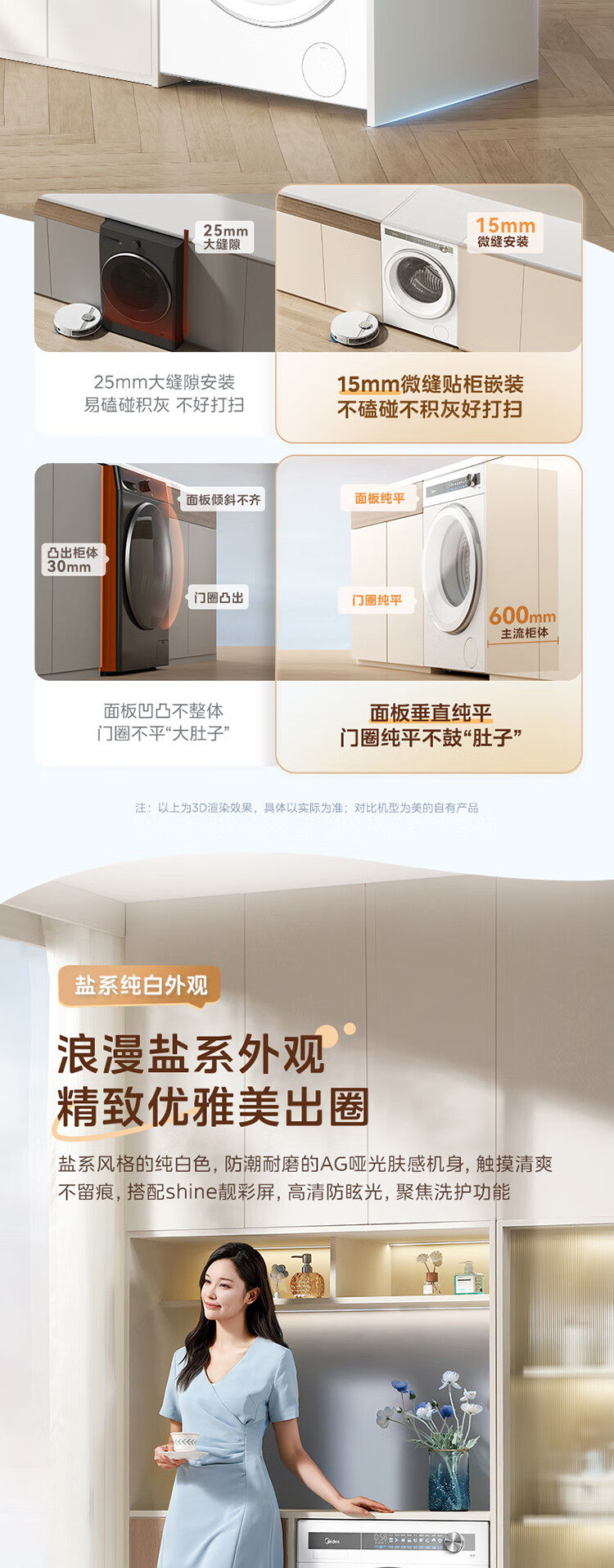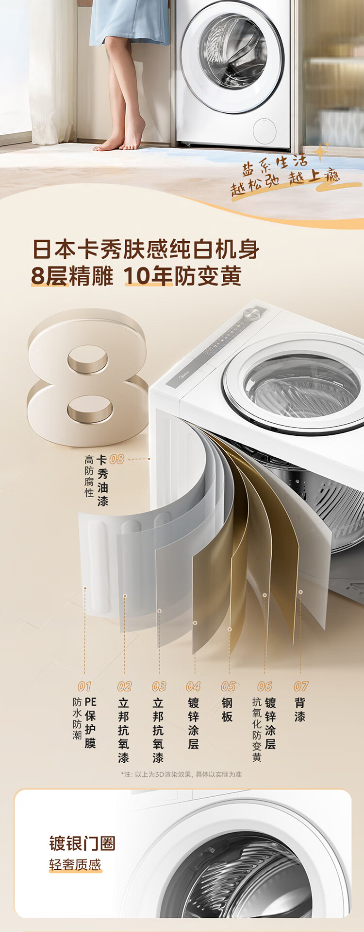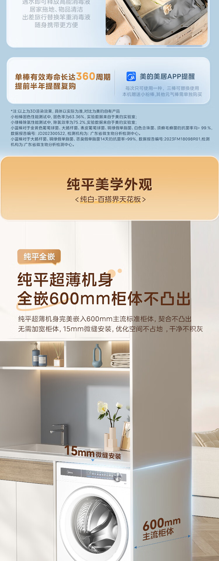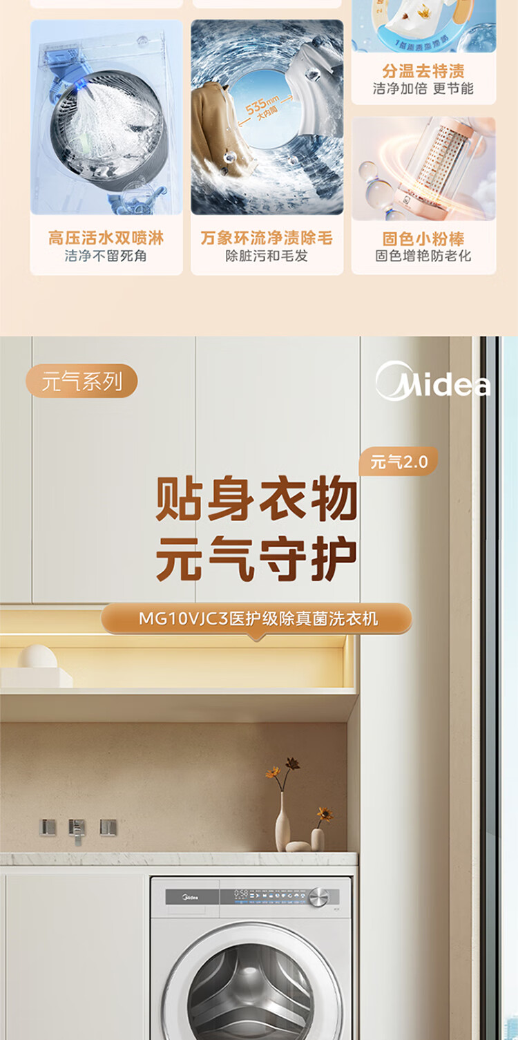 美的(Midea)10公斤滚筒洗衣机 全自动家用 纯平全嵌 元气2.0 COCO元气棒 MG10VJC3