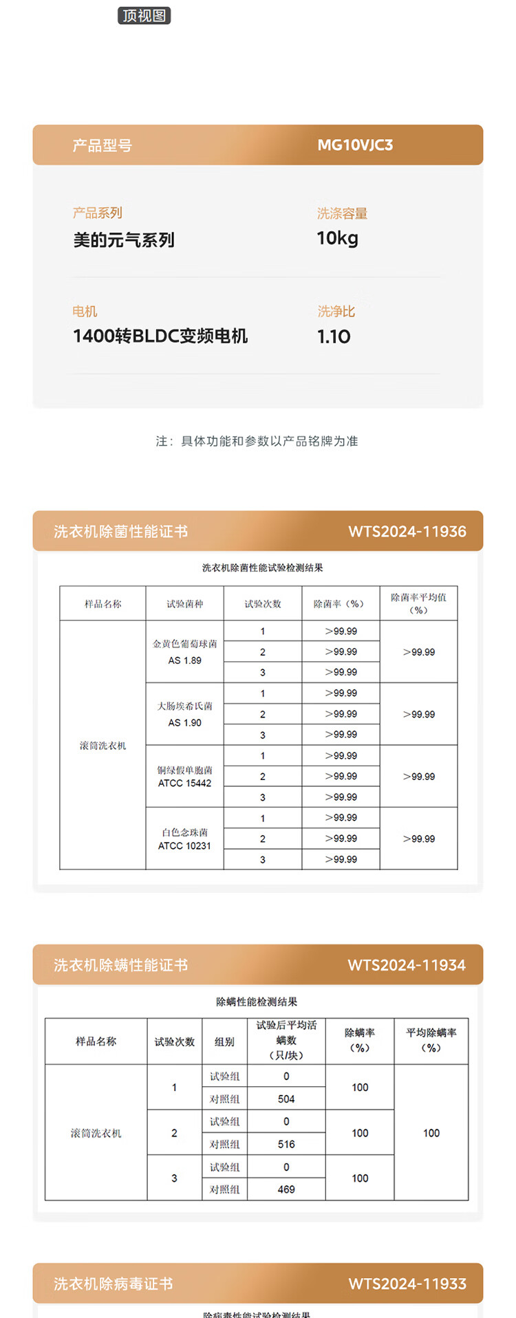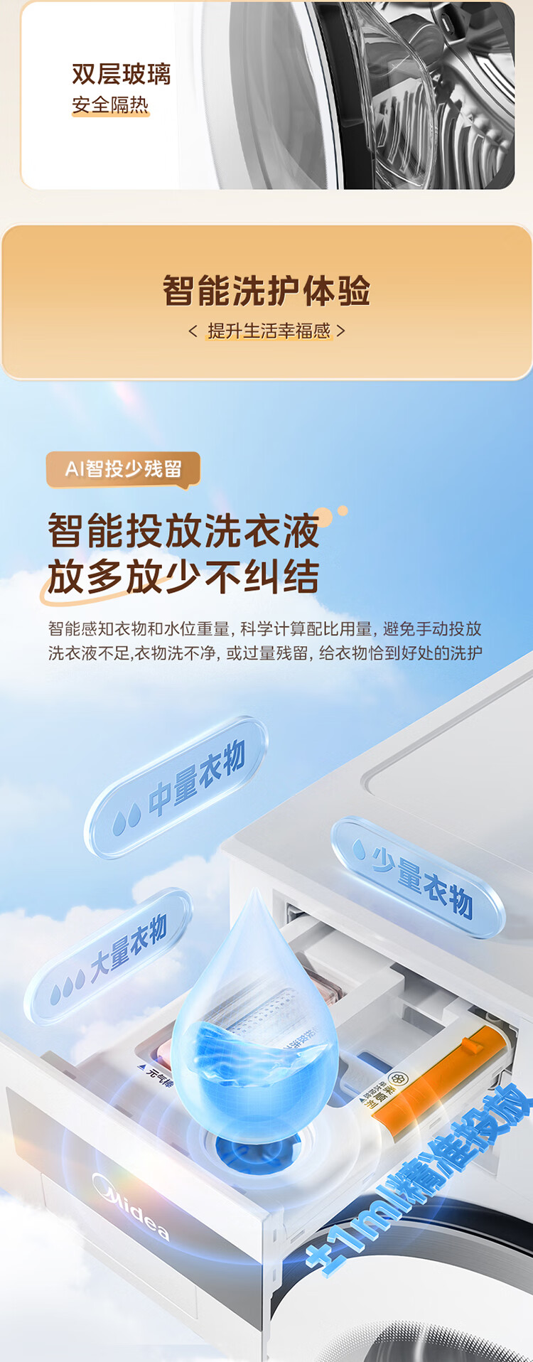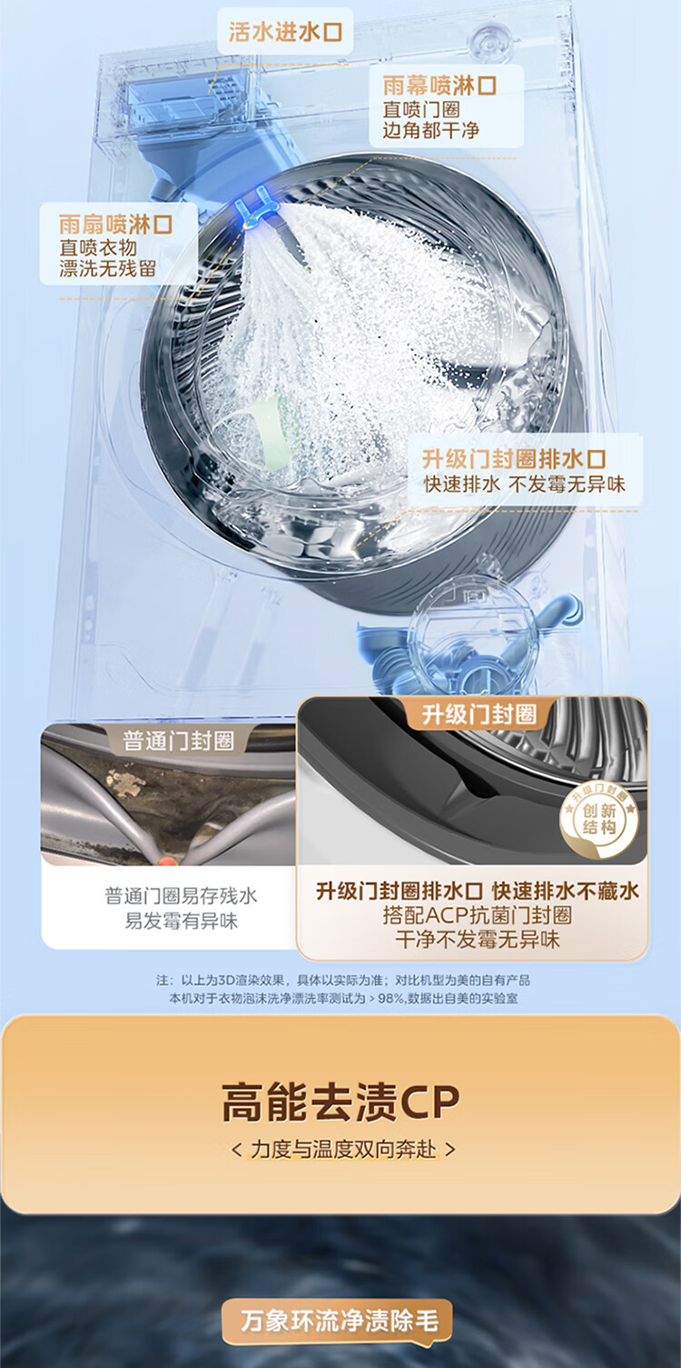 美的(Midea)10公斤滚筒洗衣机 全自动家用 纯平全嵌 元气2.0 COCO元气棒 MG10VJC3