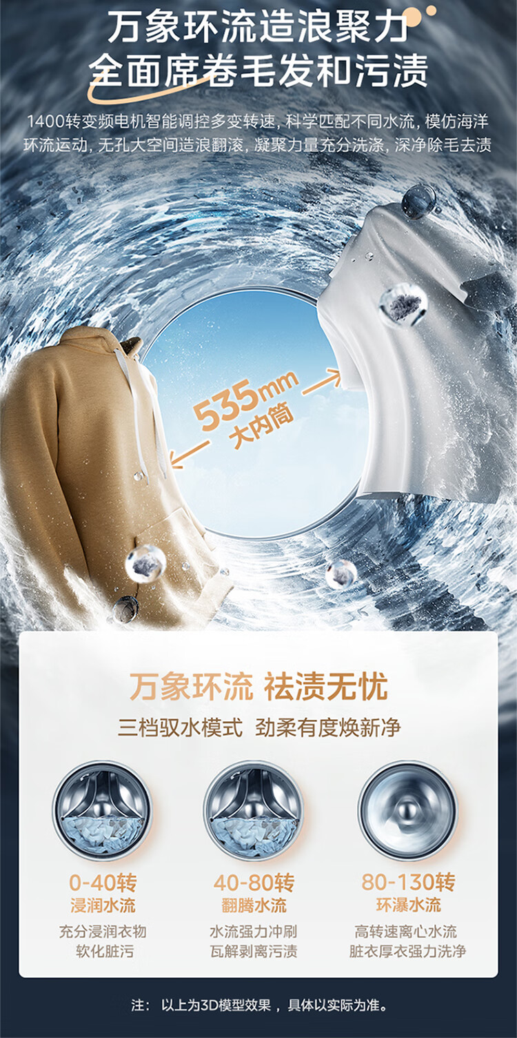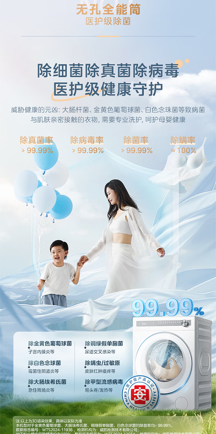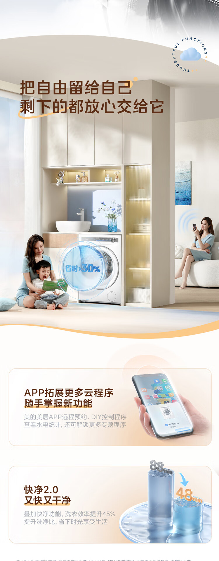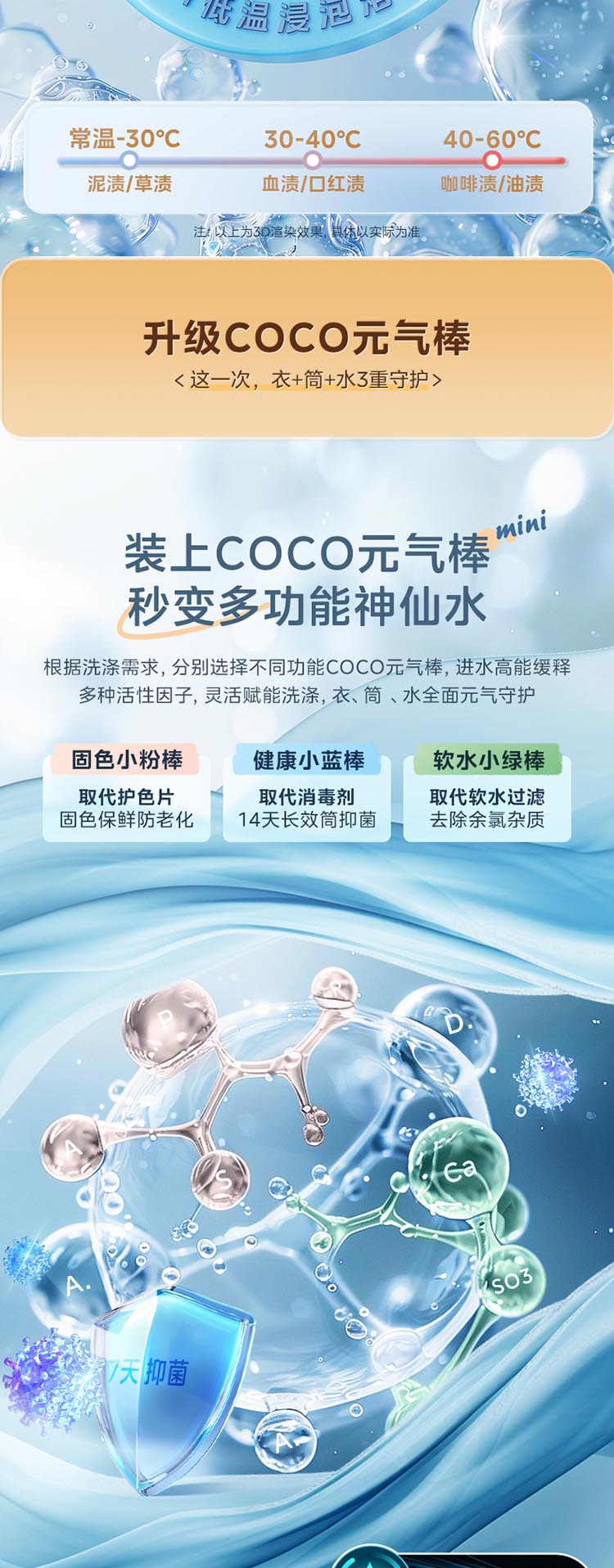 美的(Midea)10公斤滚筒洗衣机 全自动家用 纯平全嵌 元气2.0 COCO元气棒 MG10VJC3