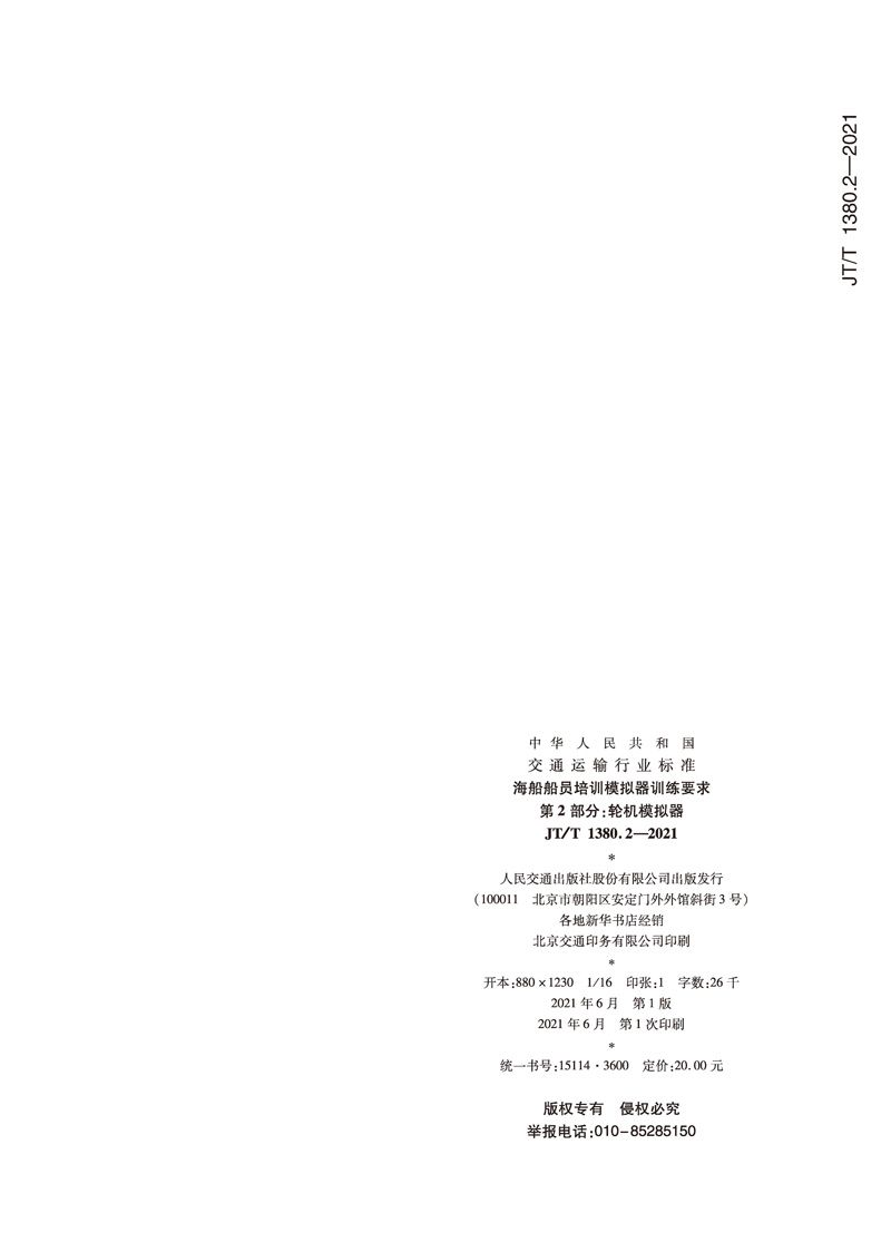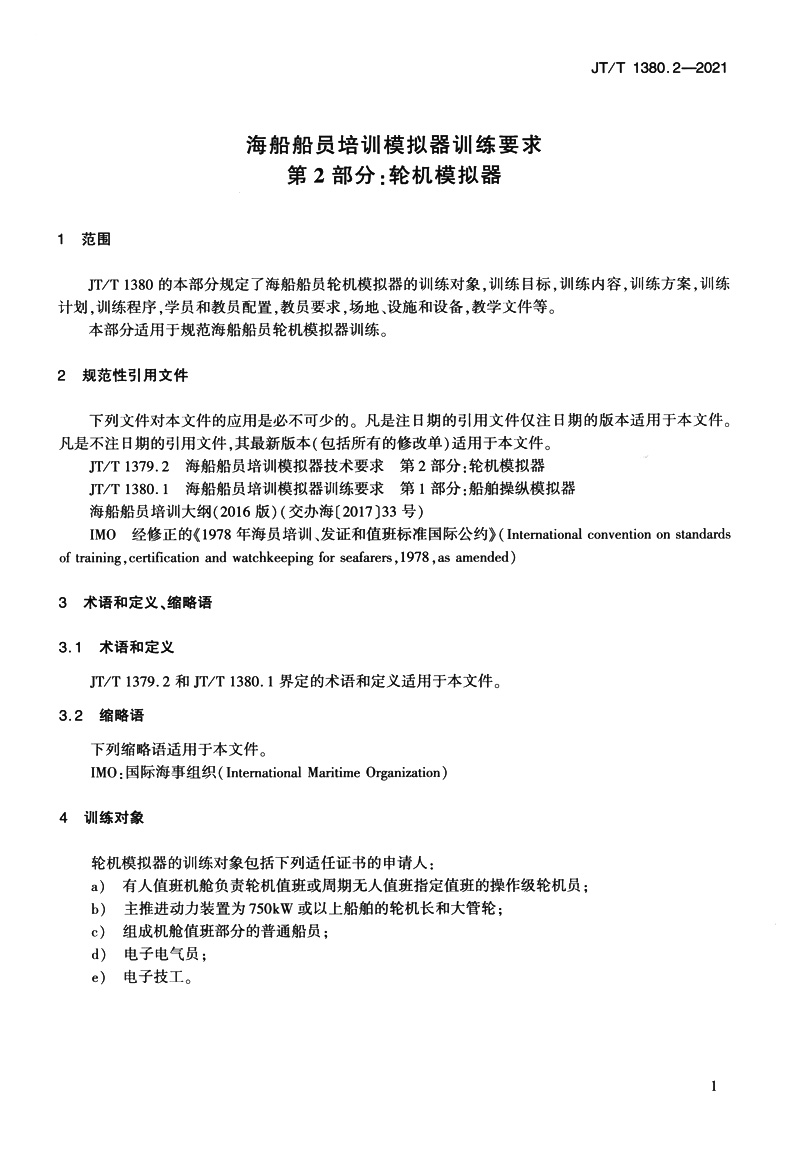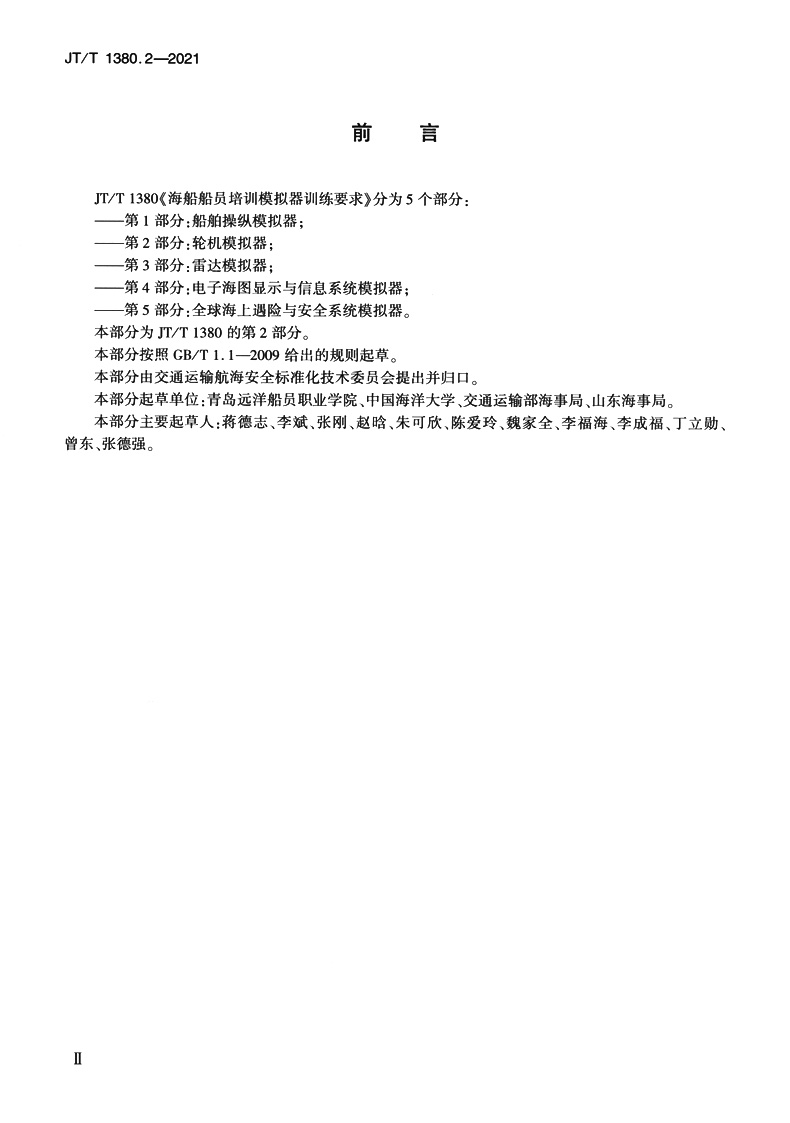 书名:海船船员培训模拟器训练要求 第2部分:轮机模拟器(JT/T 1380.2—2021)