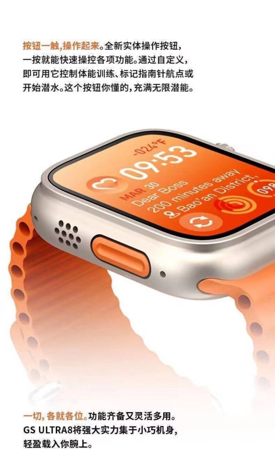 超大内存S9多功能智能手表 ·2.15英寸全面屏,428*518分辨率,还原视觉体验 ·全新升级功耗优化,持久电池续航,无线快捷充电 ·内置多种健身运动模式,专业运动算法,科学健身 智能手表让我们的生活更加便捷 这款超大内存S9多功能智能手表 涵盖通讯、娱乐、健康多种功能 解放你的双手,畅享轻松生活
