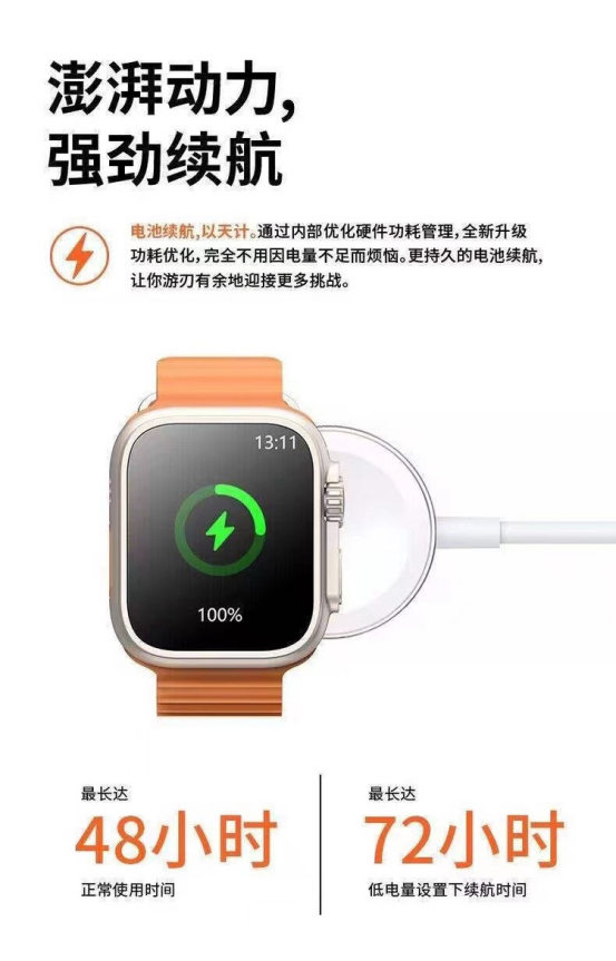 澎湃动力,强劲续航 通过内部优化硬件功耗管理,全新升级功耗优化 可正常使用48h,完全不用因电量不足而烦恼 更持久的电池续航,让你游刃有余地迎接更多挑战