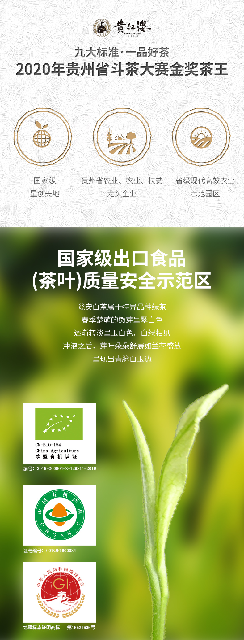 2025年新茶黄红缨瓮安白茶官方店明前特级茶500g送礼盒装绿茶叶