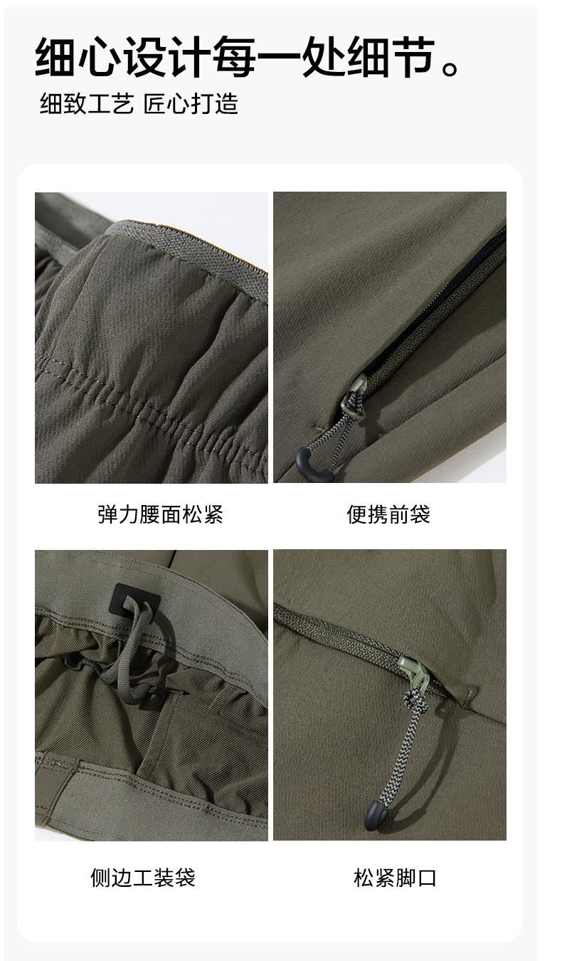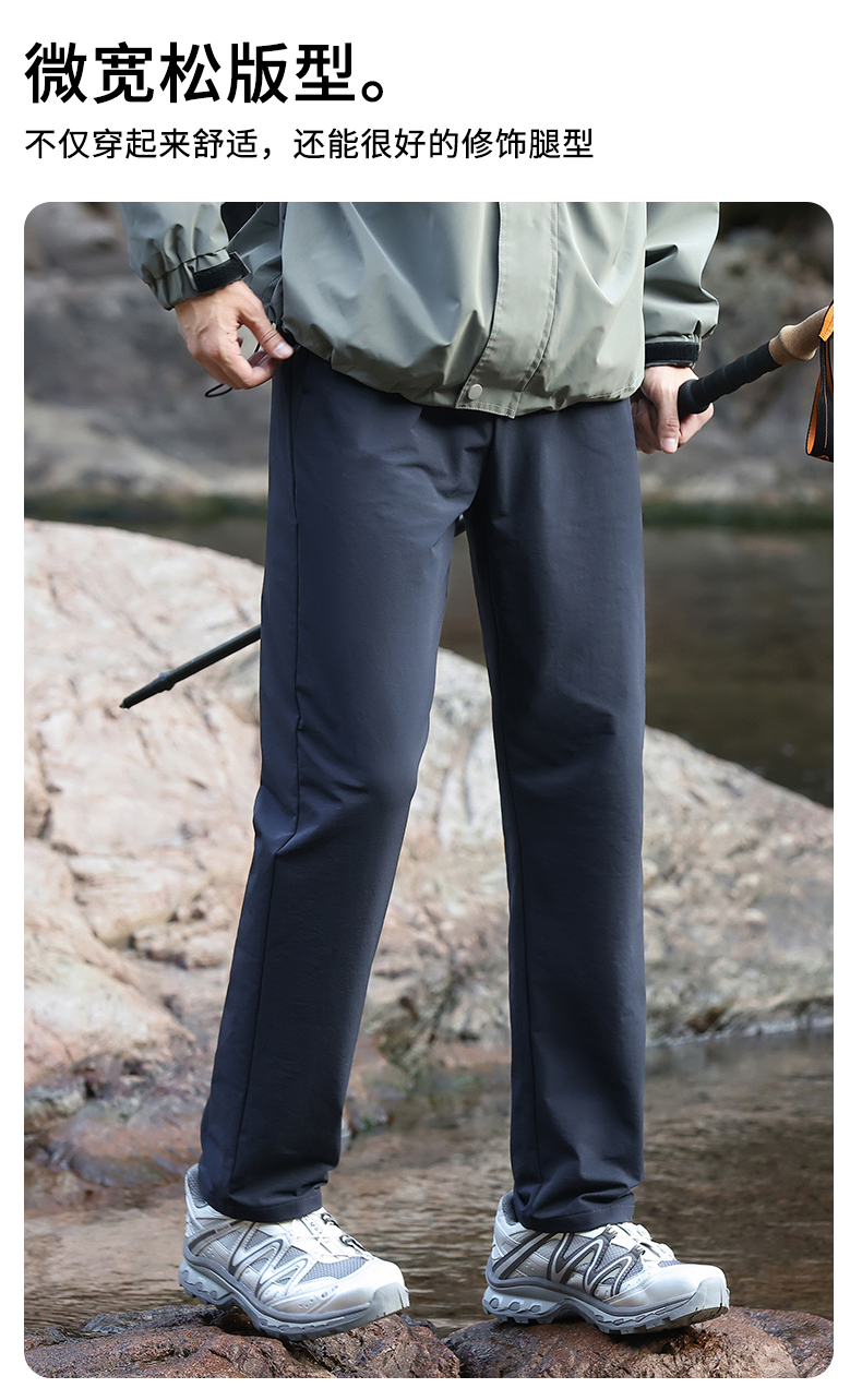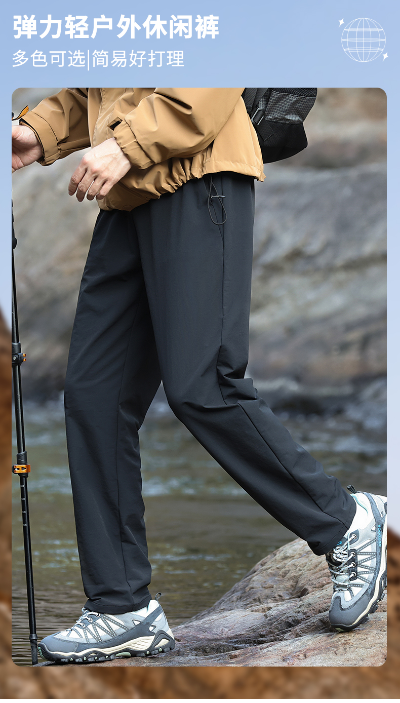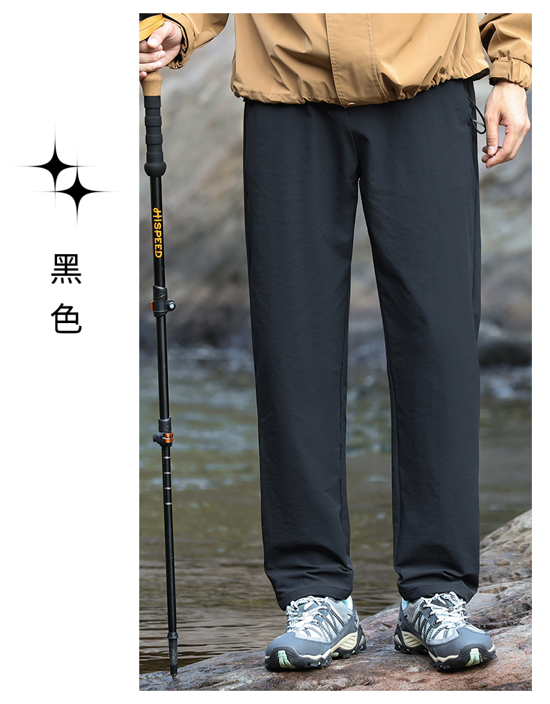 圣得西休闲裤男透气黑色户外登山裤松紧微弹百搭休闲长裤