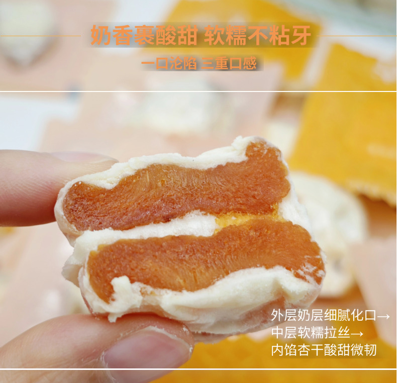 【配料】黄杏干、棉花糖、全脂乳粉、乳清粉
