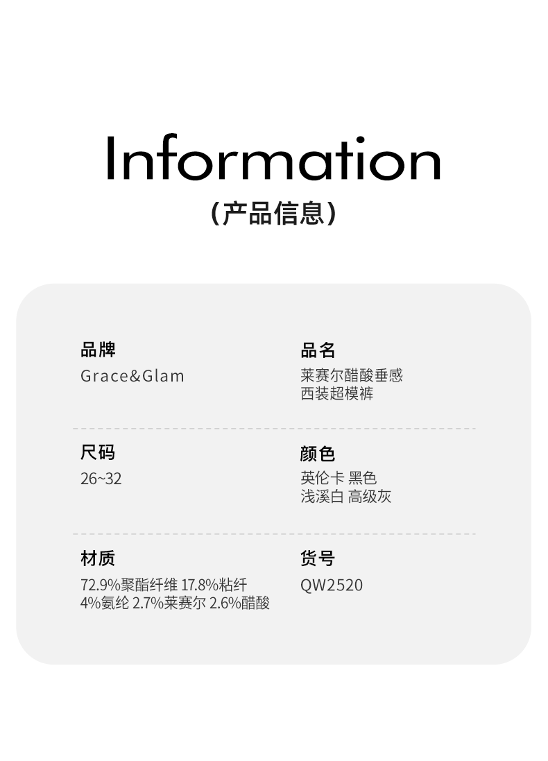 Grace&Glam 莱赛尔醋酸垂感西装超模裤