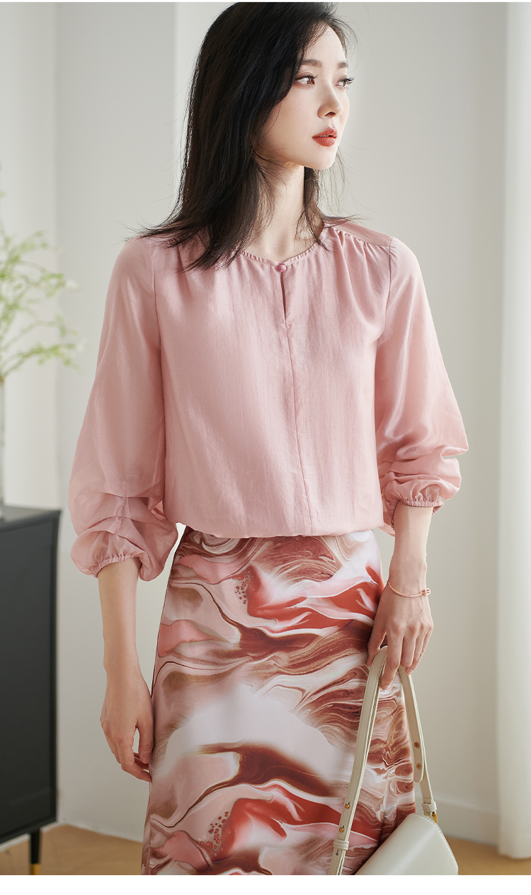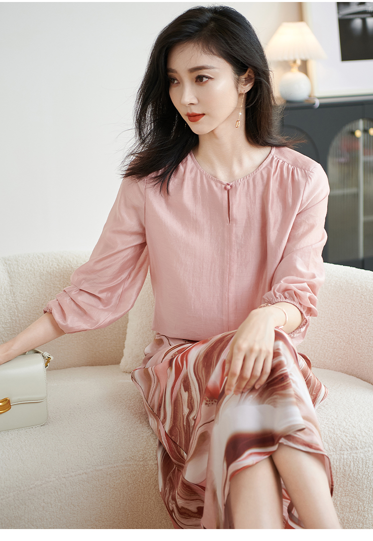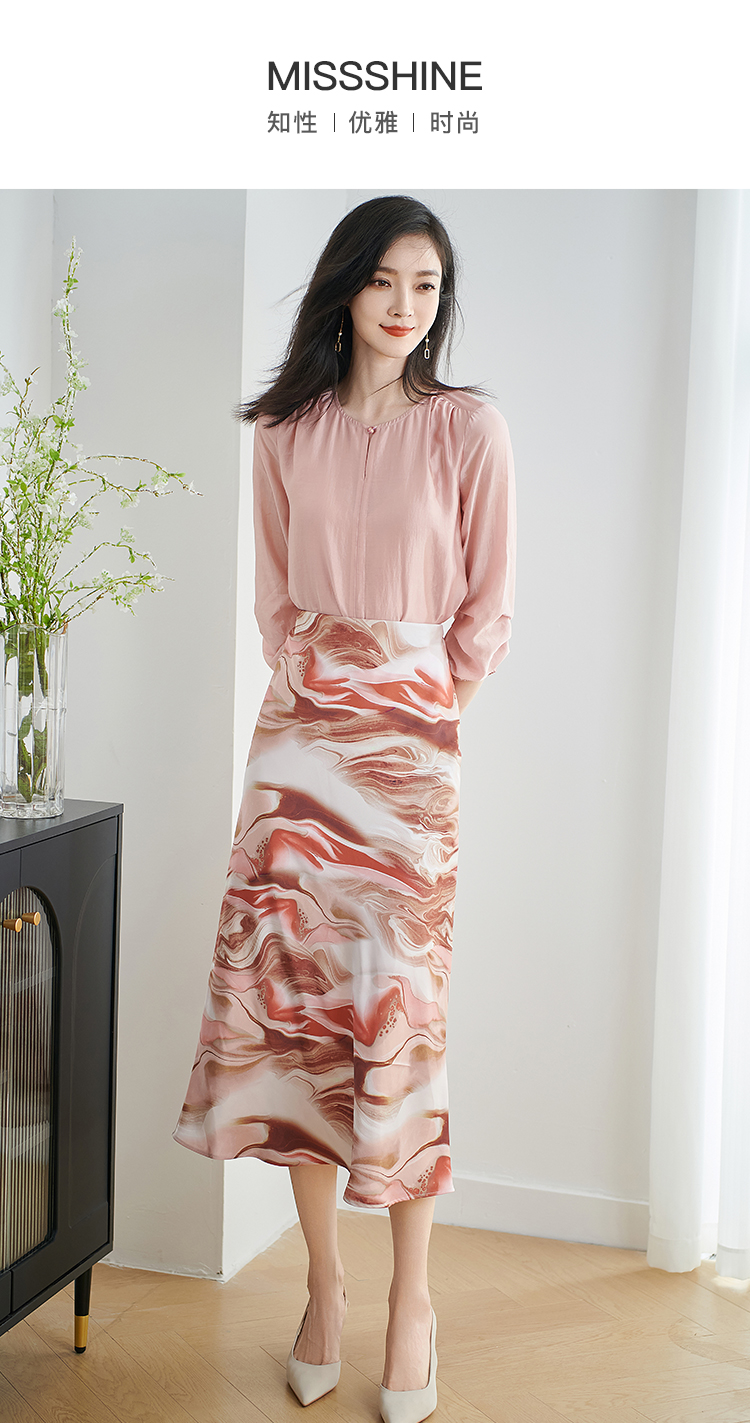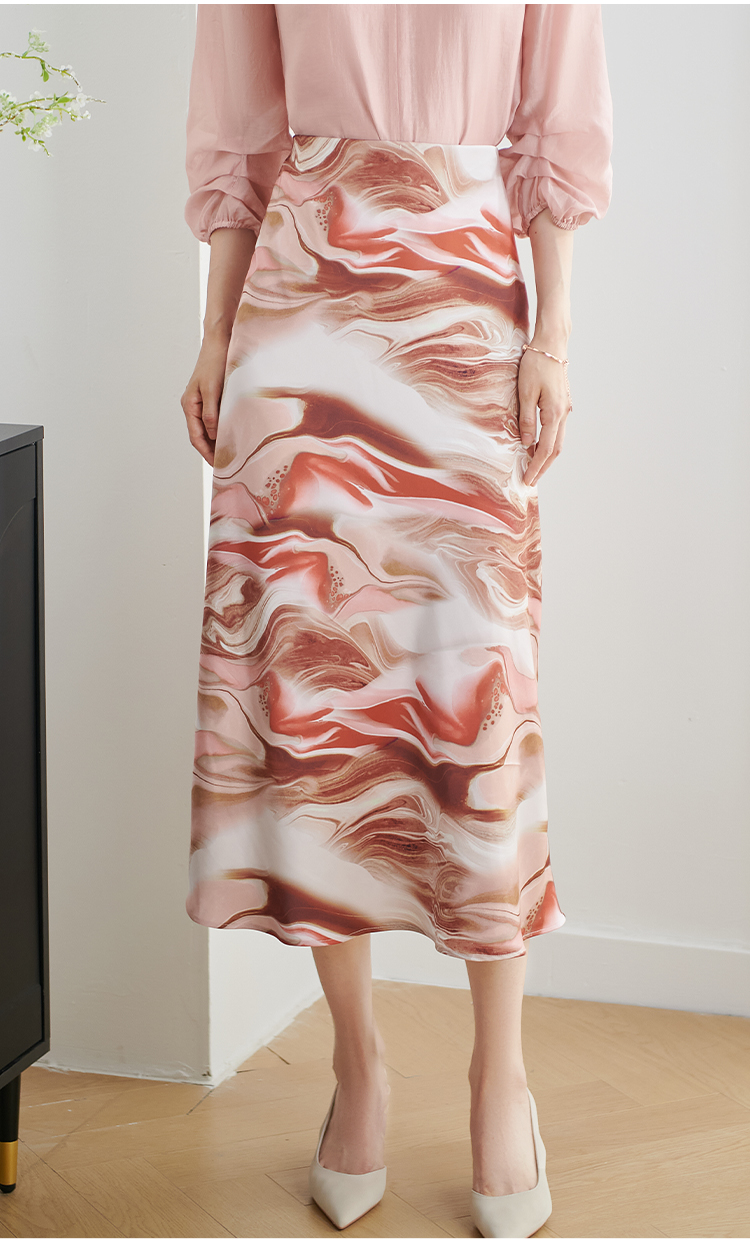 米思阳2026春新款时尚粉色印花中长裙顺滑显瘦百搭半身裙1814