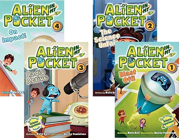 与外星人的奇妙冒险!Alien in my pocket 是一套体验科学实验的书!当一个4英寸的外星人安普意外冲进扎克的卧室时,扎克确定他要成为新一轮世界大战的第一个牺牲者了。但之后,他开始保护这个小小外星人并帮他寻找回家的路。