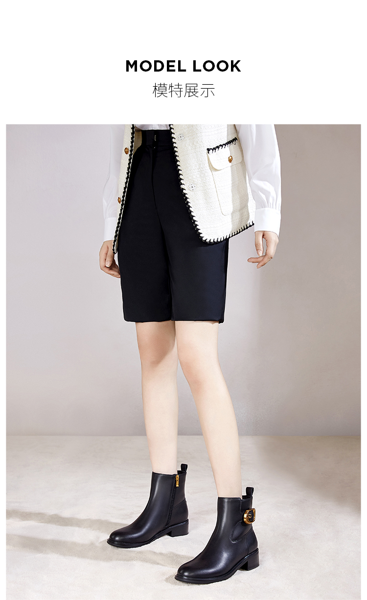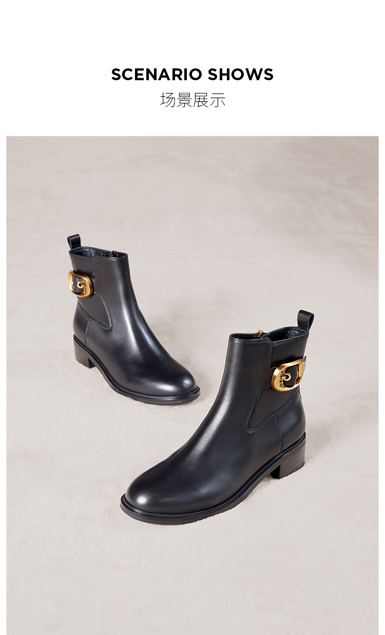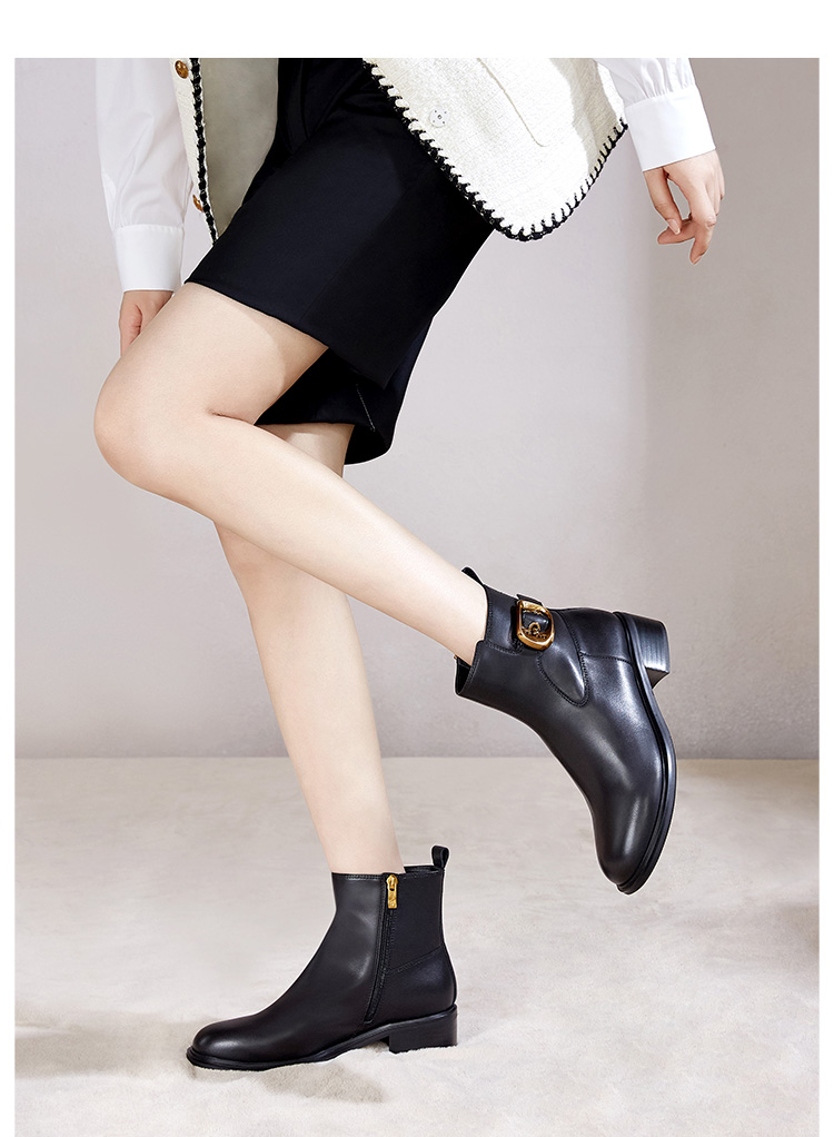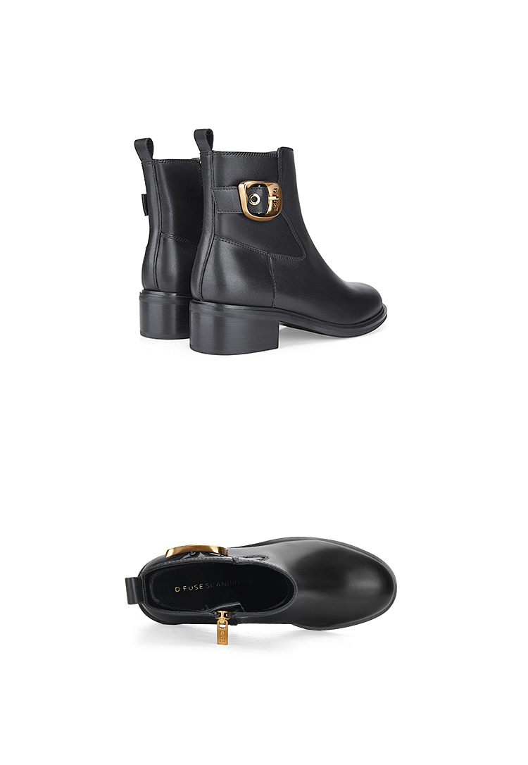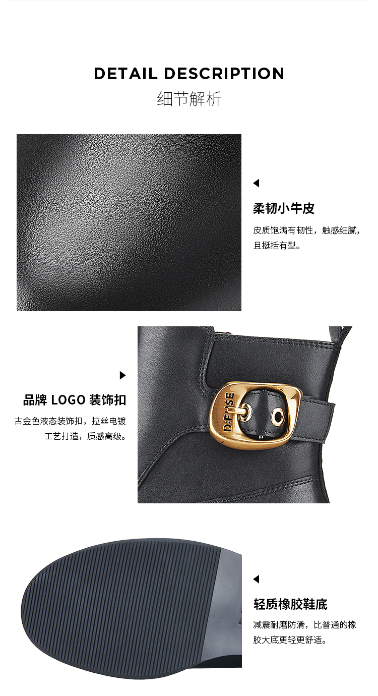 Dfuse迪芙斯冬季新款牛皮圆头休闲复古金扣短靴女DF34116010/DF34118010