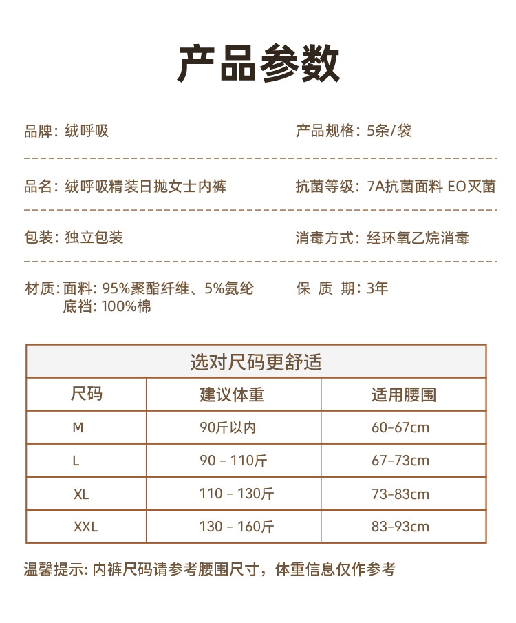 差旅安心搭子~7A级灭菌!新版绒呼吸一次性内裤5袋/包