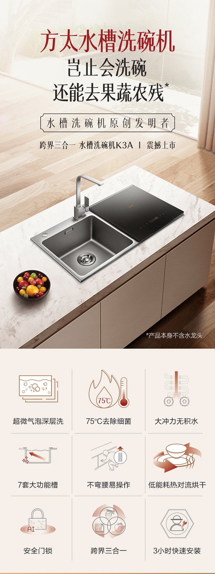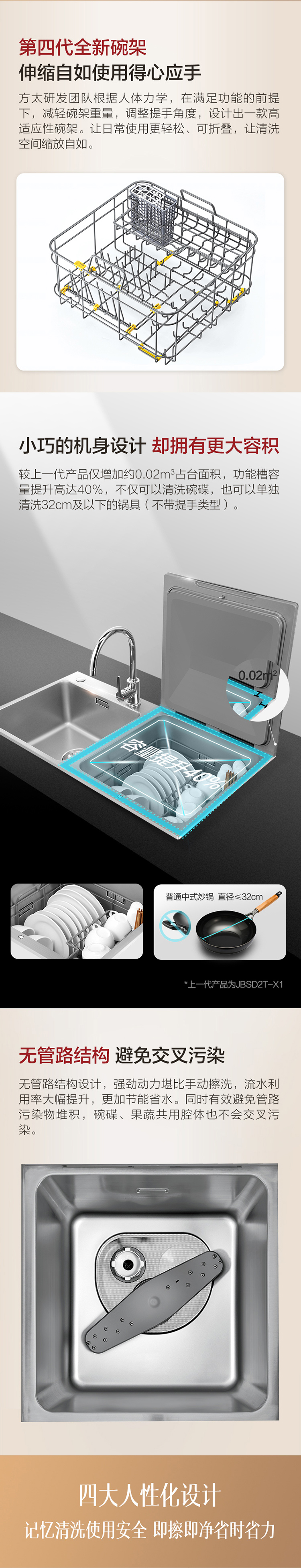 方太(FOTILE) 水槽式洗碗机JBSD2T-K3A家用嵌入式一体超微气泡洗菜洗水果全自动刷碗机