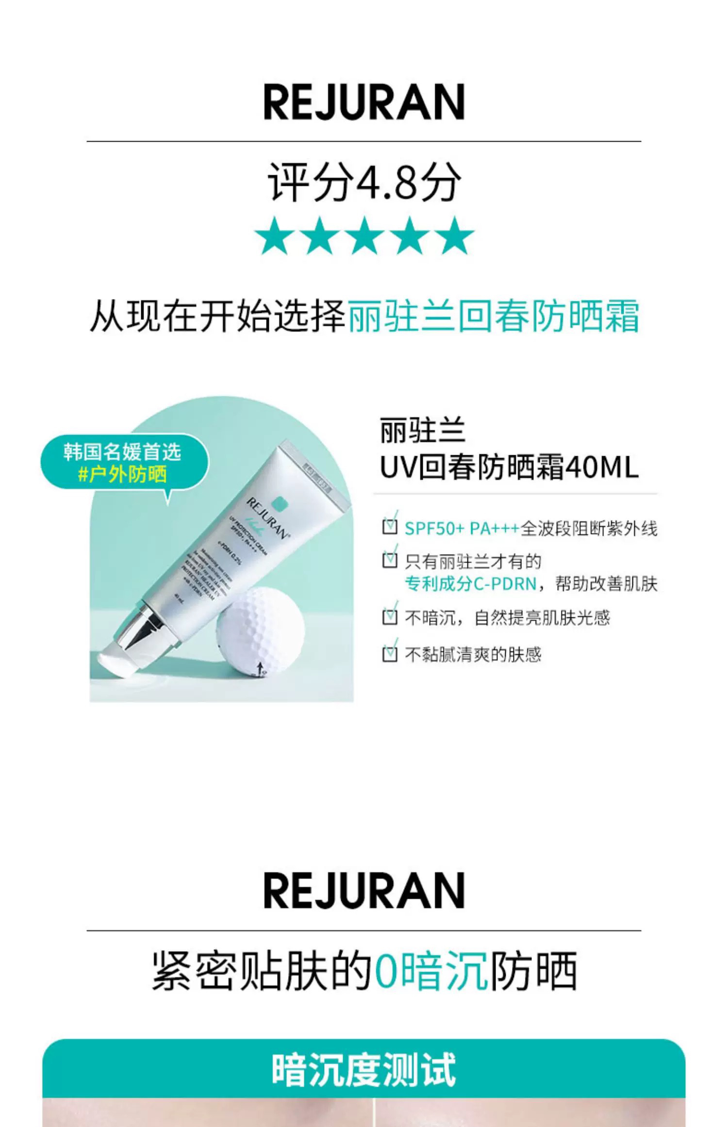 【物化结合】REJURAN丽珠兰 回春清爽防晒霜 SPF50+/PA+++ 40ml (敏感肌可选)