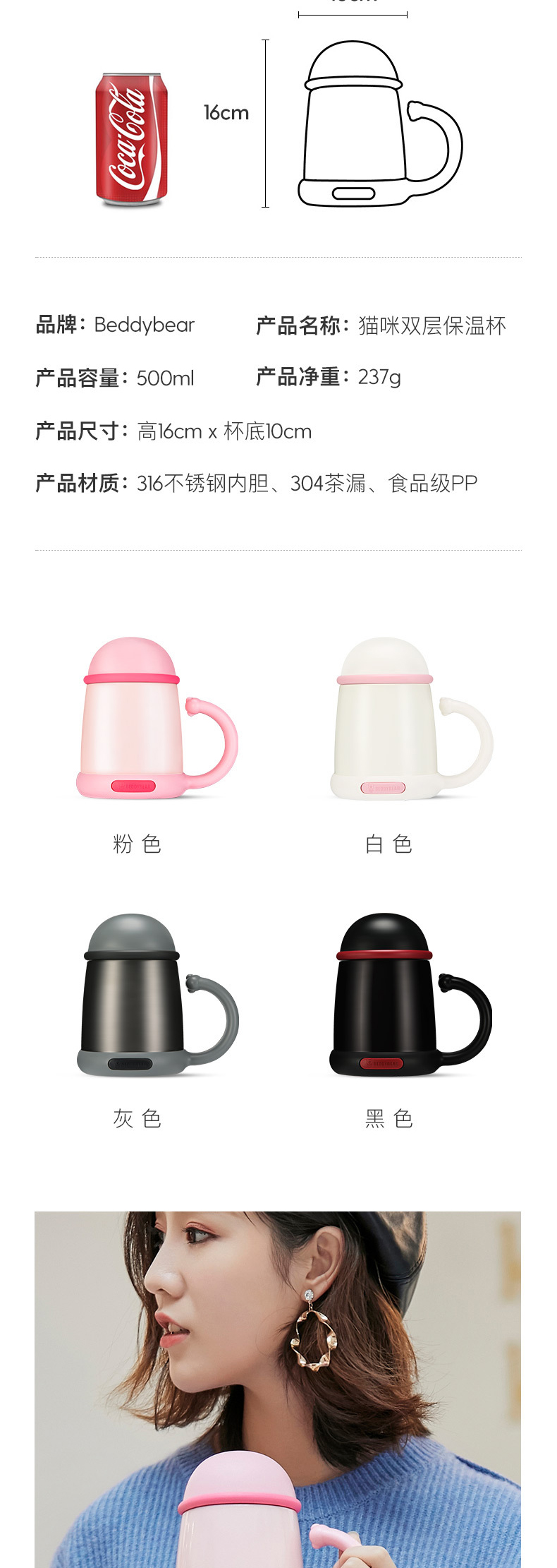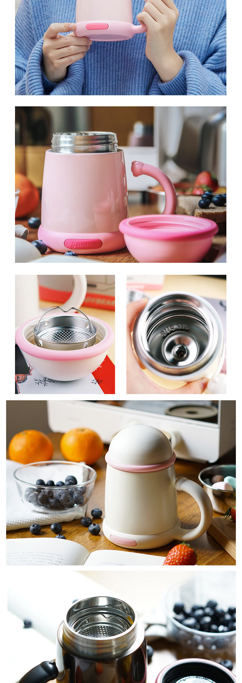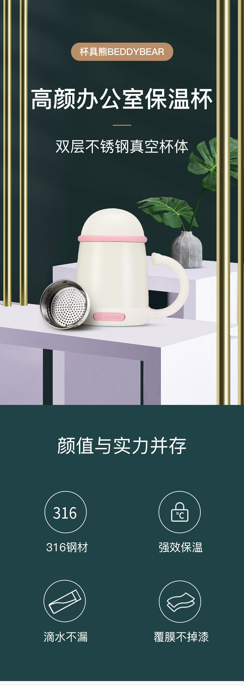 【品牌直发】【杯具熊猫咪办公保温系列】带滤网办公室 316不锈钢水杯泡茶漏 500ml