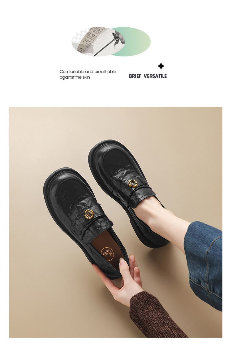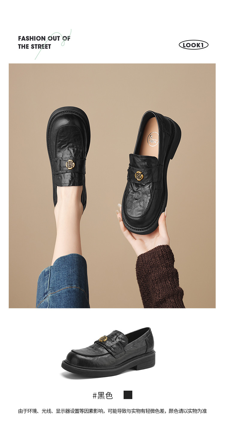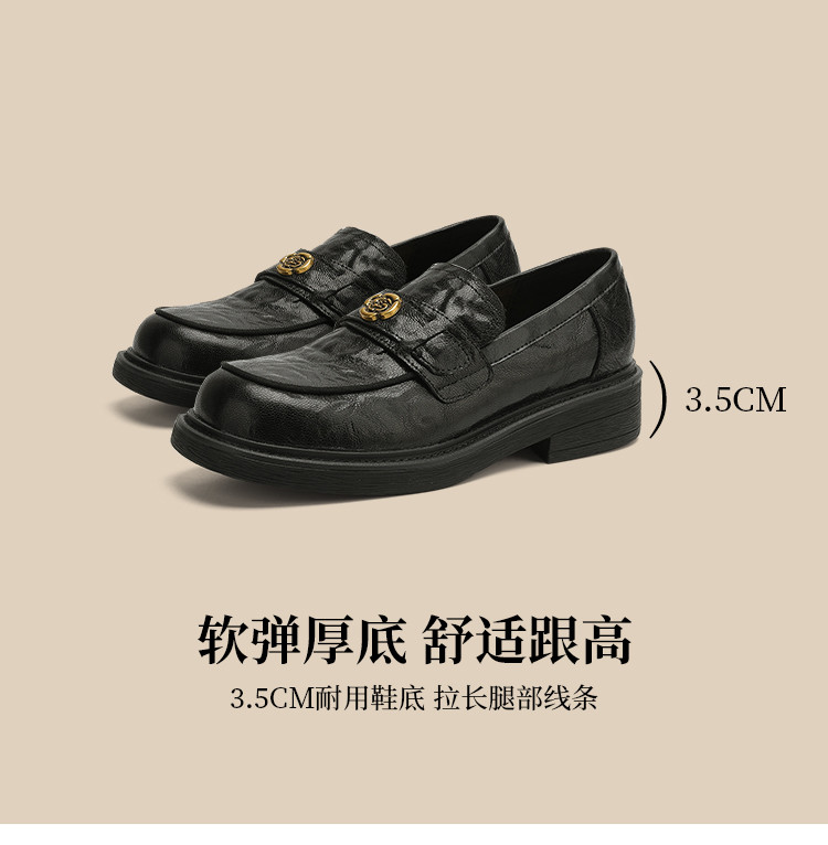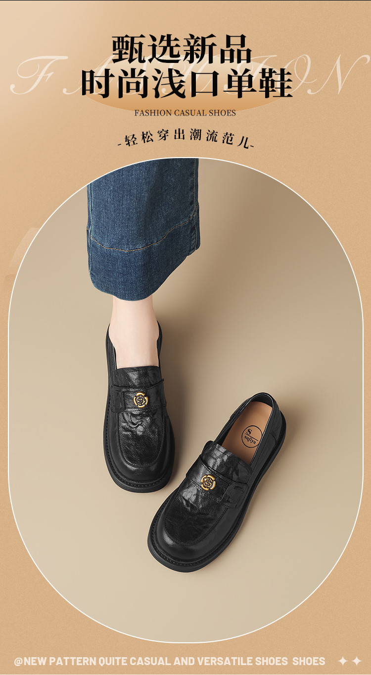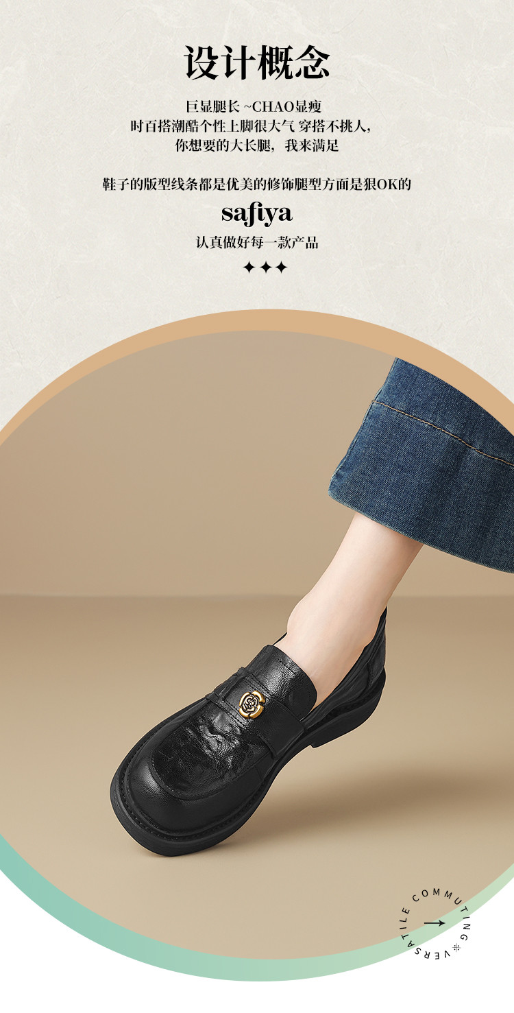 品质好货|Safiya/索菲娅2025秋冬柔软羊皮时尚通勤皱褶金属花朵低跟深口乐福鞋