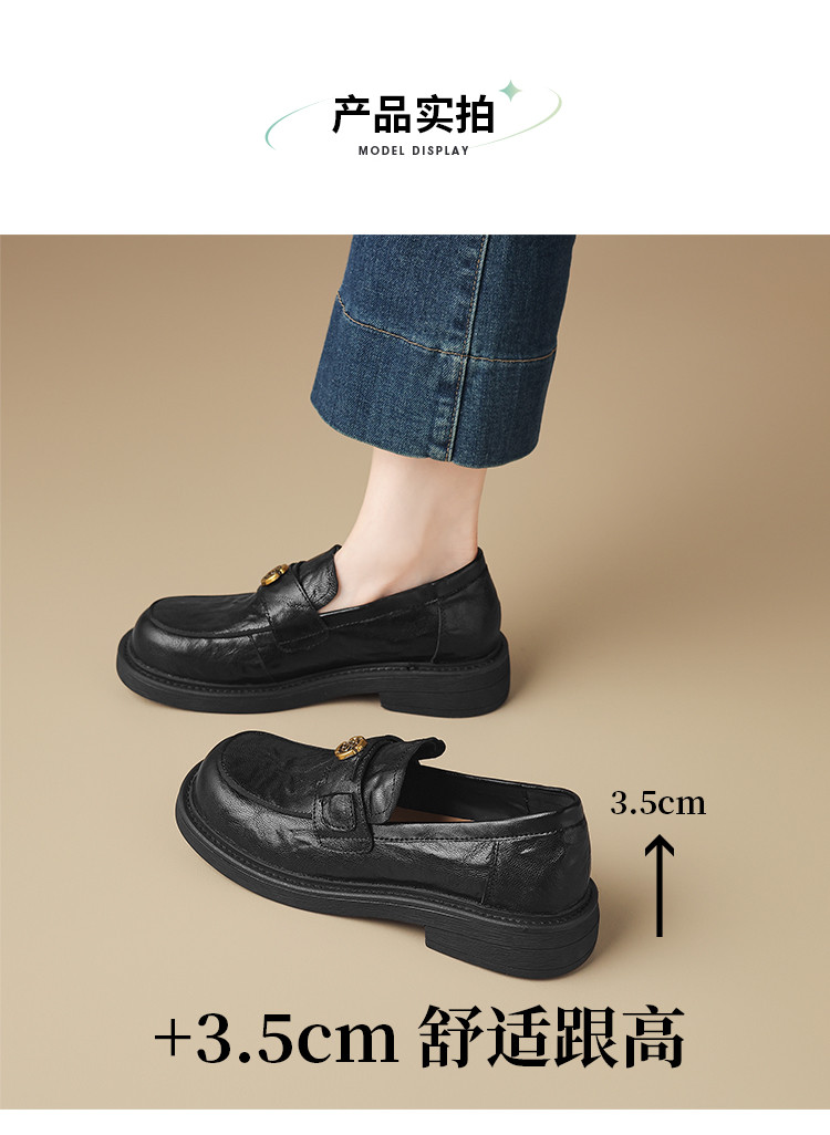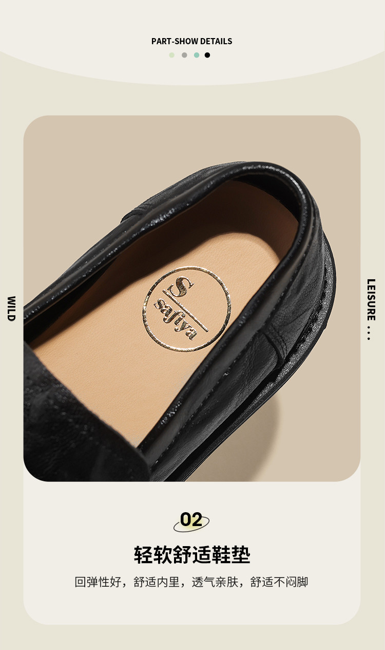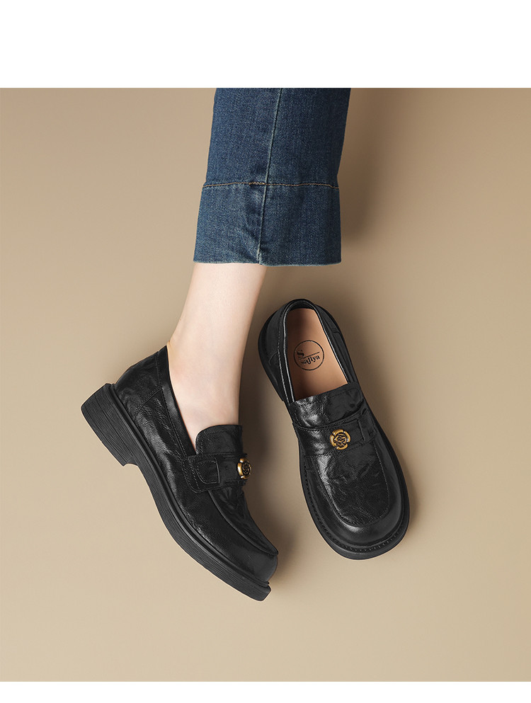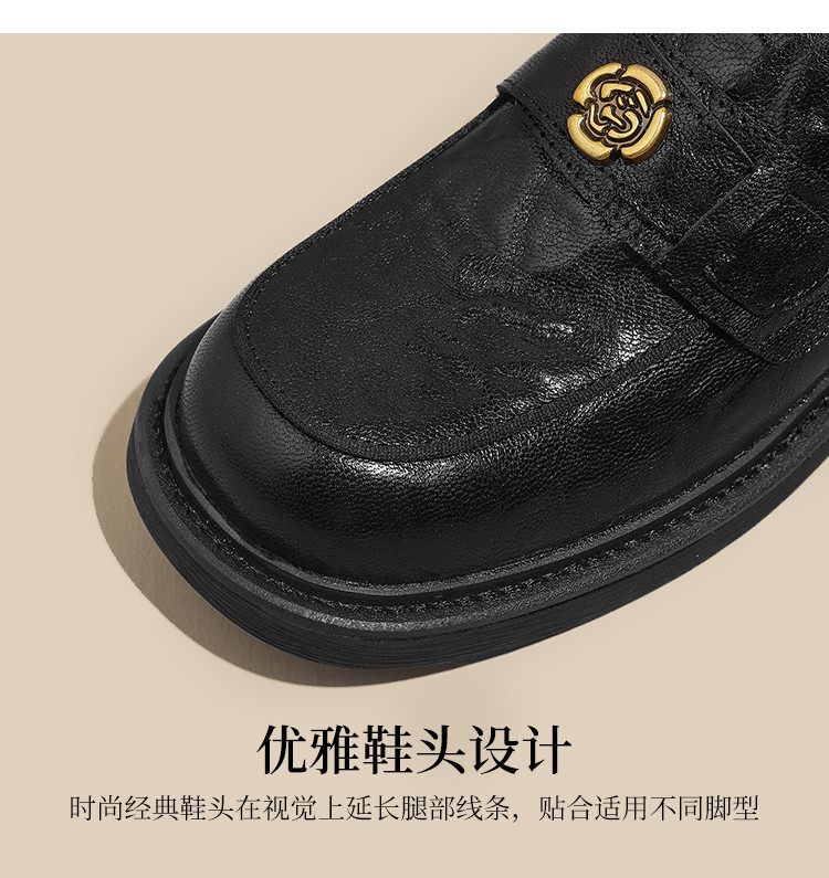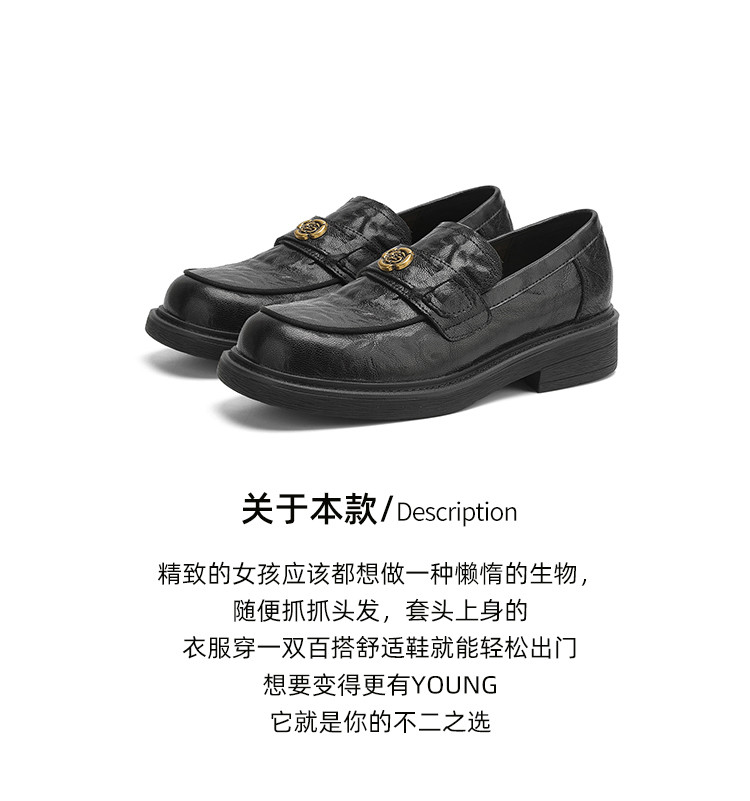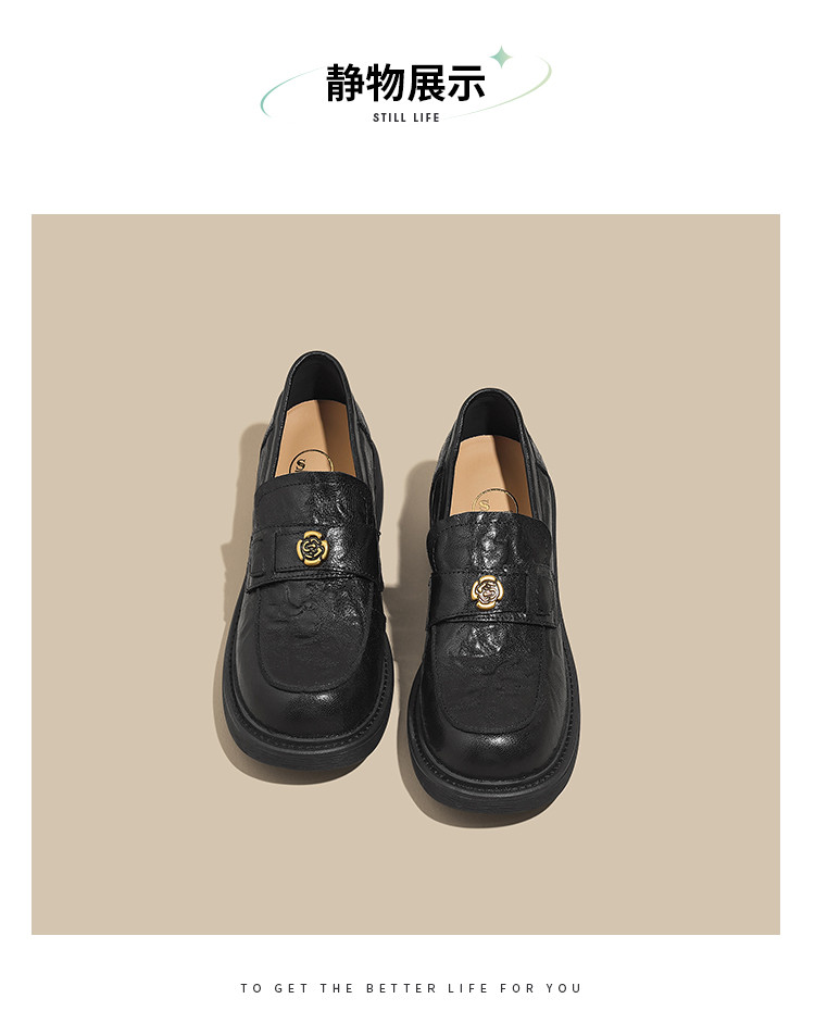 品质好货|Safiya/索菲娅2025秋冬柔软羊皮时尚通勤皱褶金属花朵低跟深口乐福鞋