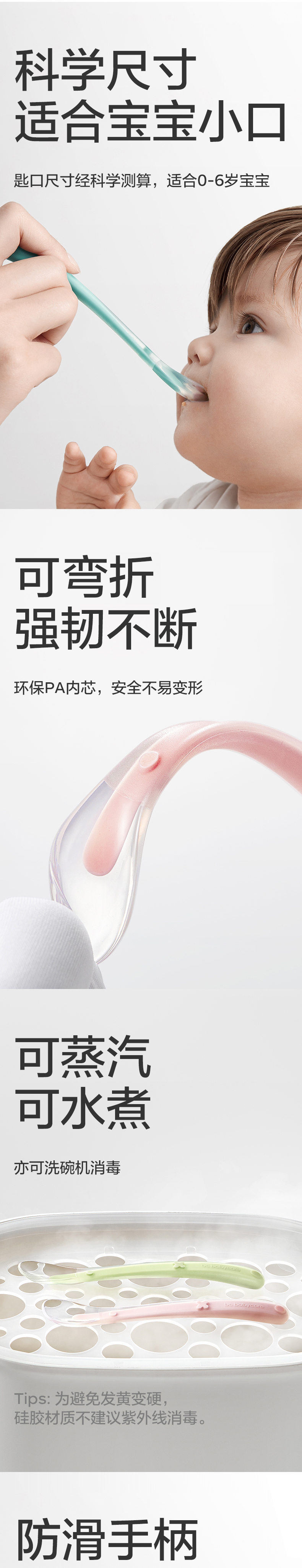 【积分商城】babycare宝宝硅胶软勺 新生儿婴儿喂水勺子餐具儿童吃饭辅食碗勺