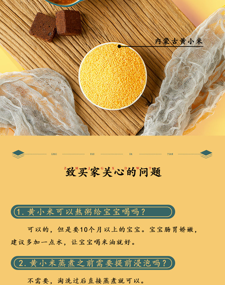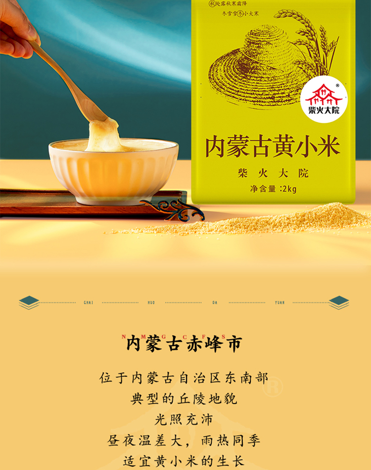 柴火大院 黄小米 (杂粮 小米粥 真空装 粥米伴侣)2kg