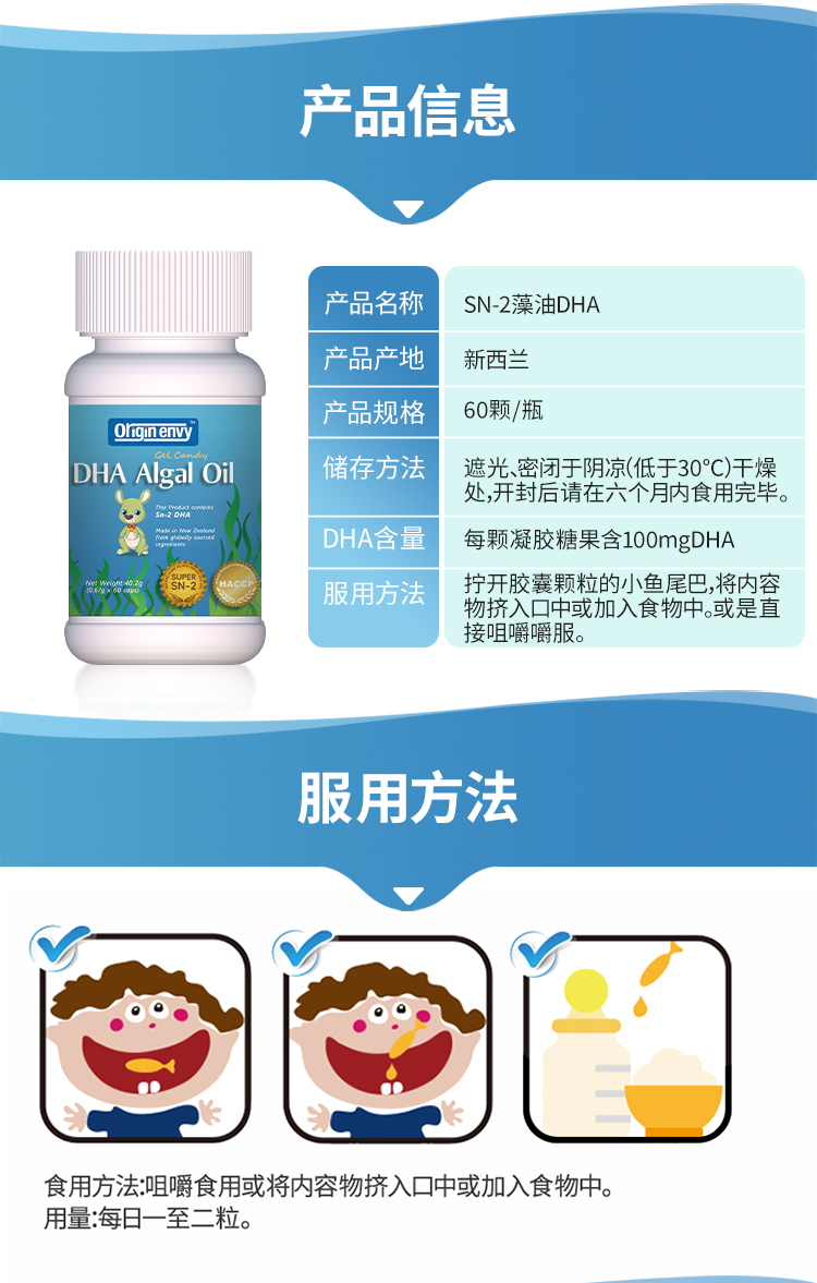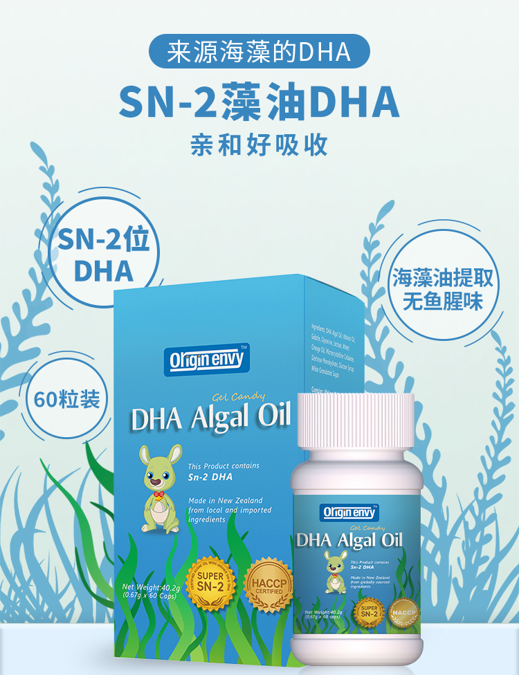 【买二送一】欧尔金维Origin Envy全新升级SN-2藻油DHA60粒【海口发货】【欧尔金维系列满520送1瓶防晒喷雾,满666送肤乐霜】【橙妈推荐】