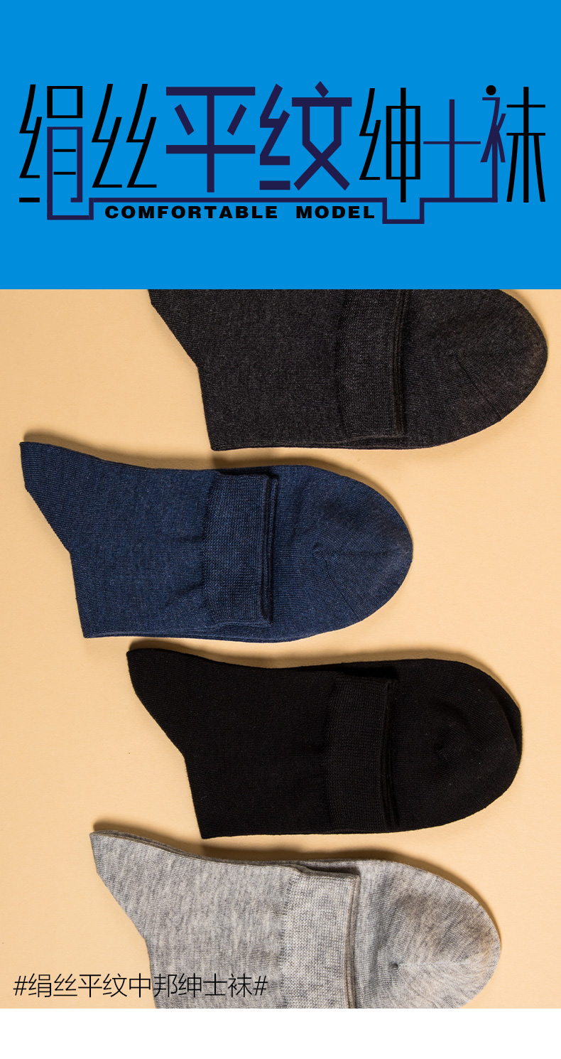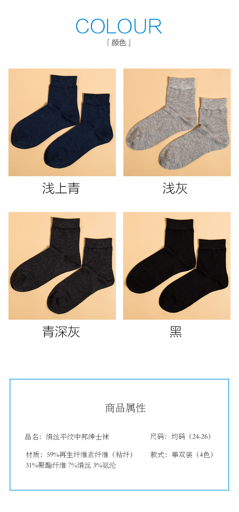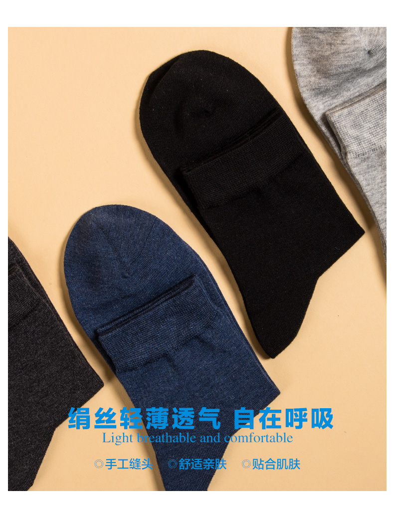 【任选6双99.5】四季男士绢丝薯木蚕丝200加密编织手工对目缝头平纹中邦绅士袜
