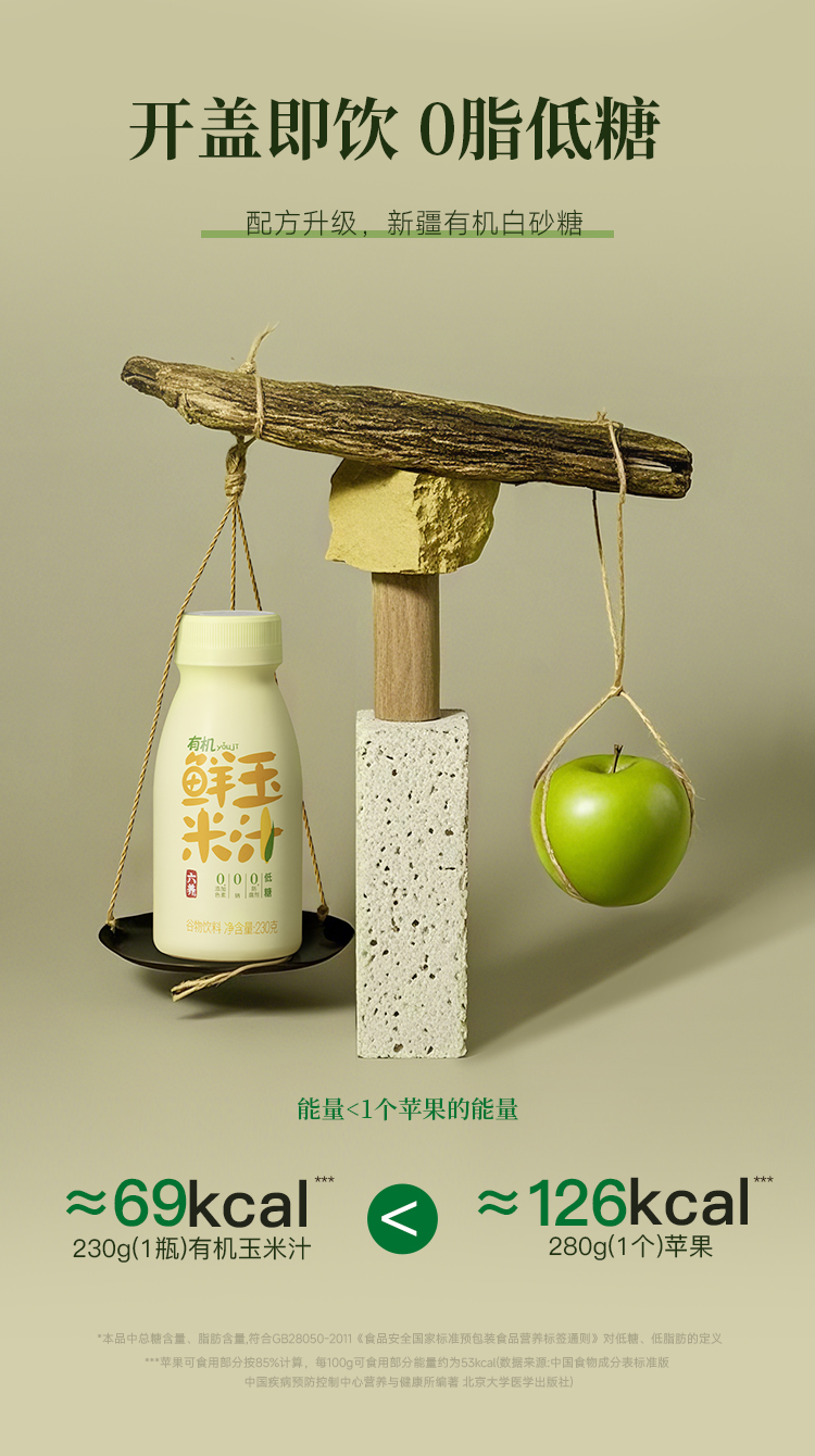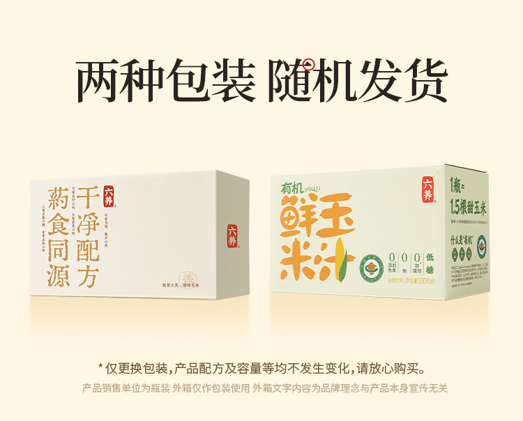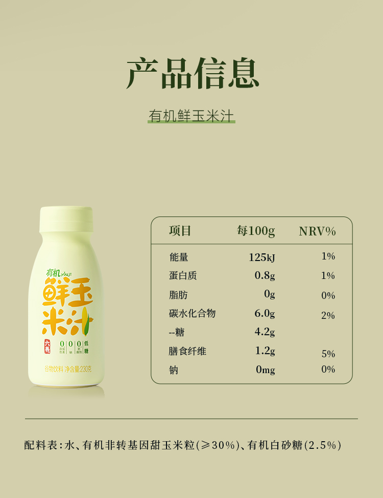 六养有机鲜玉米汁230g*8瓶装现榨现灌含膳食纤维营养早餐谷物饮料包邮