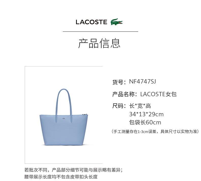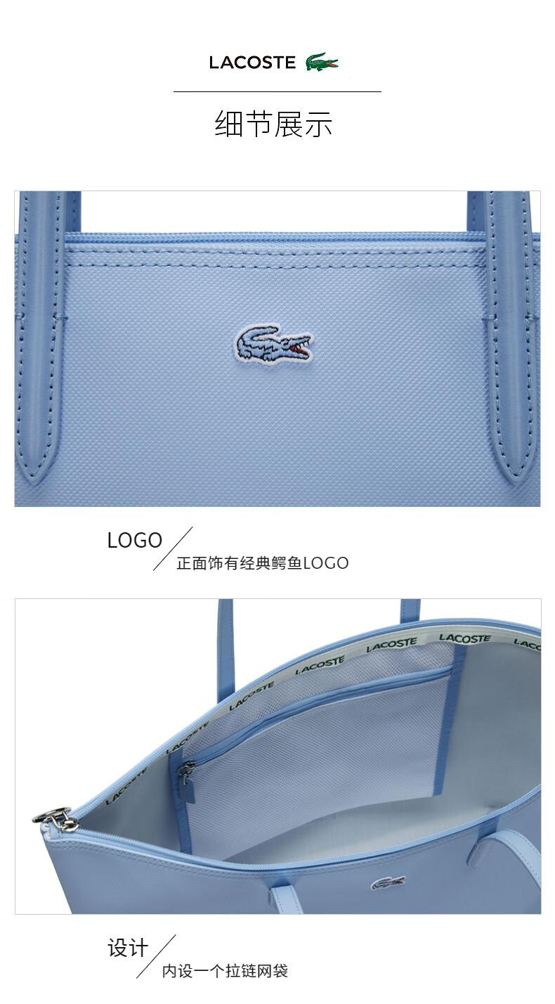 Lacoste法国鳄鱼女士新款时尚纯色大容量单肩托特包NF4747SJ