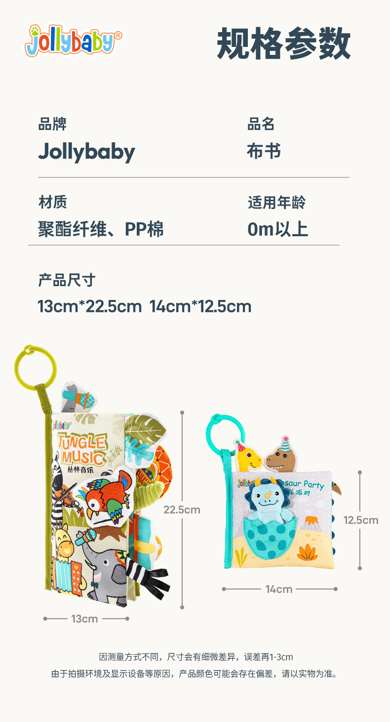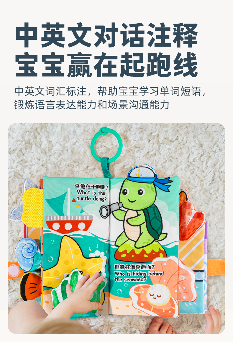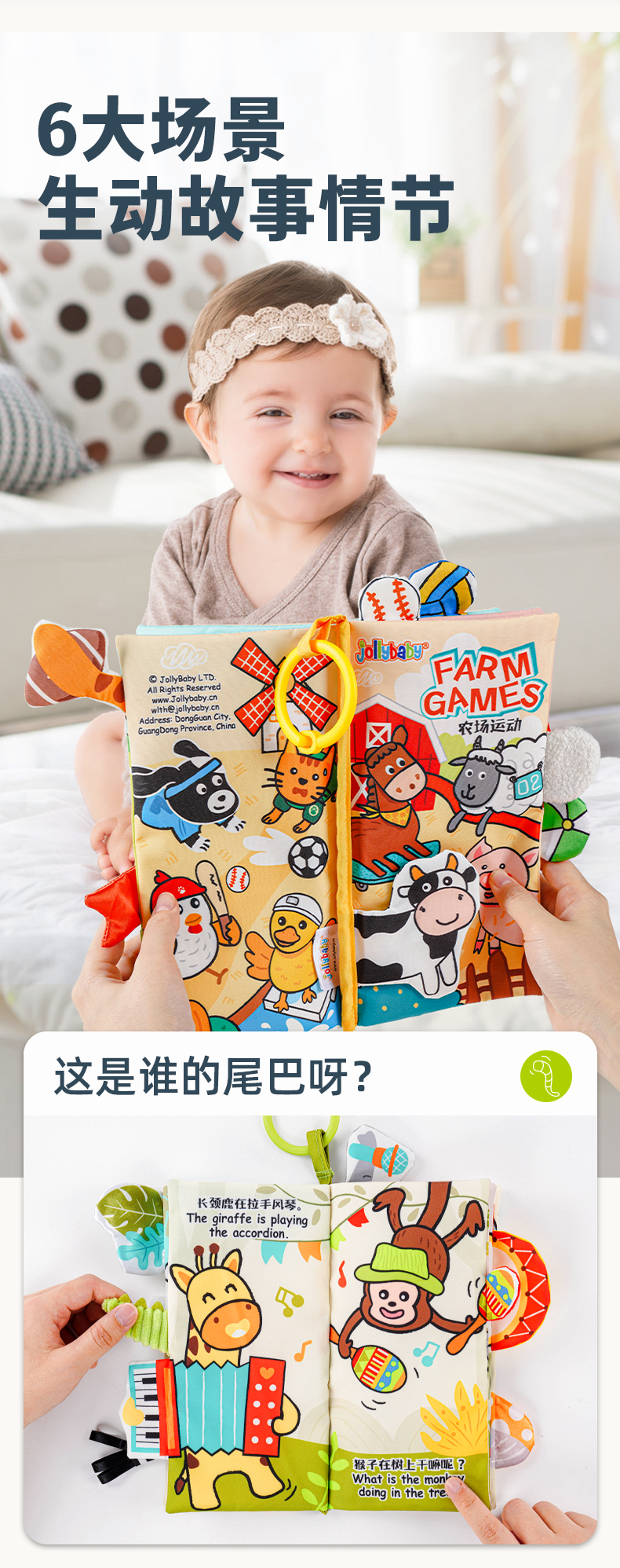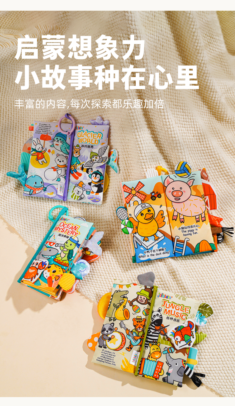 *jollybaby尾巴布书 婴儿撕不烂可啃咬早教益智0-6个月宝宝玩具1岁