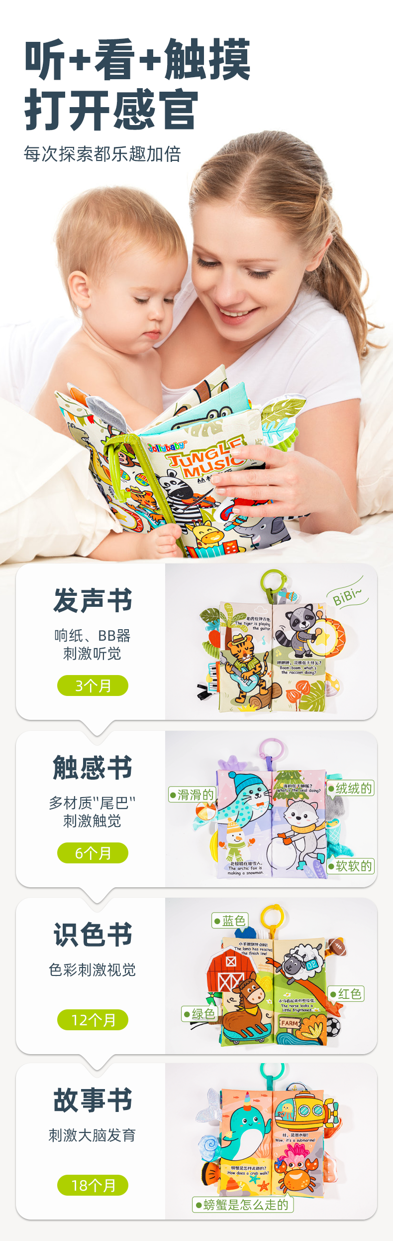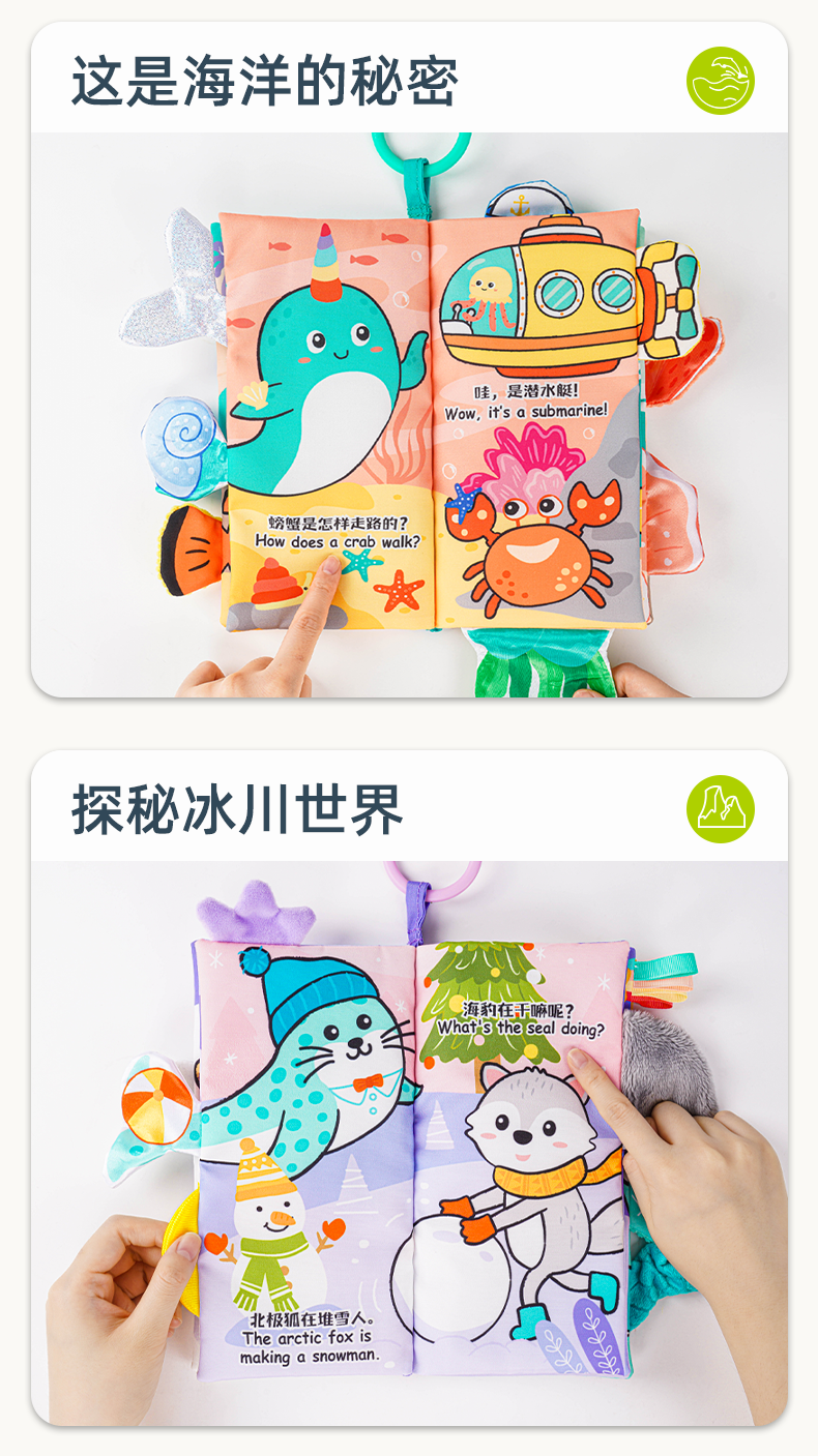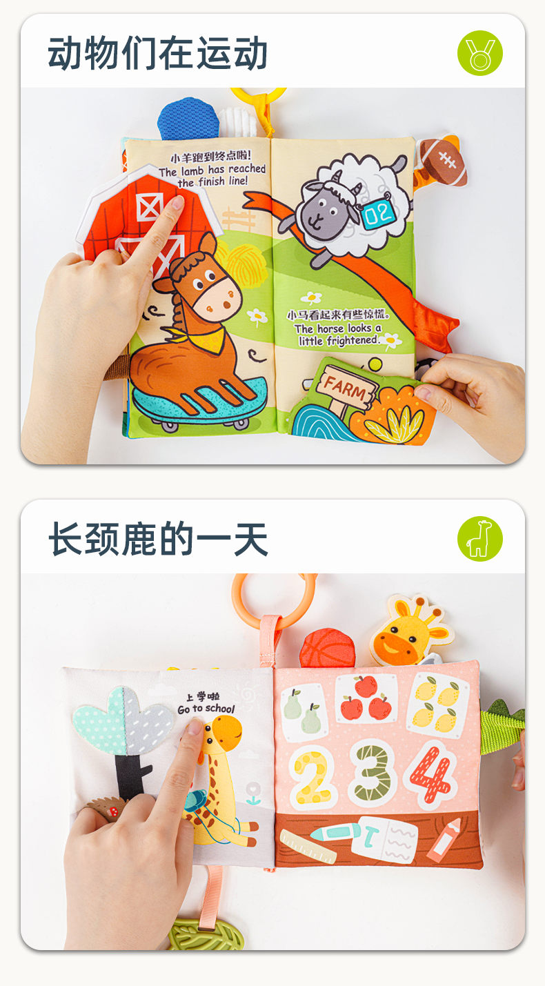 *jollybaby尾巴布书 婴儿撕不烂可啃咬早教益智0-6个月宝宝玩具1岁