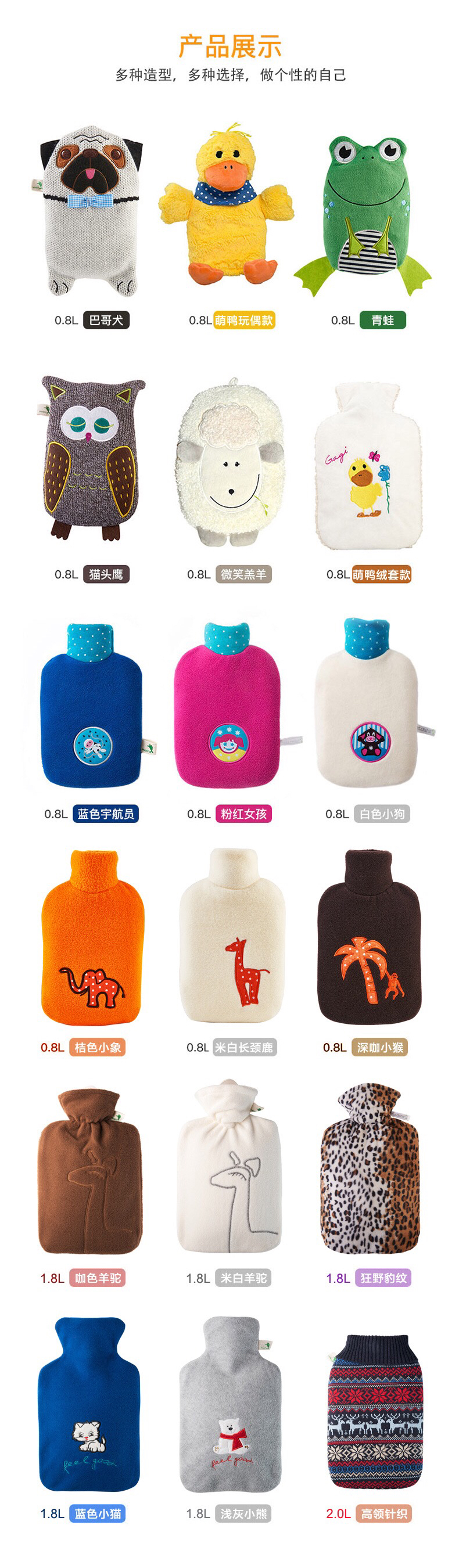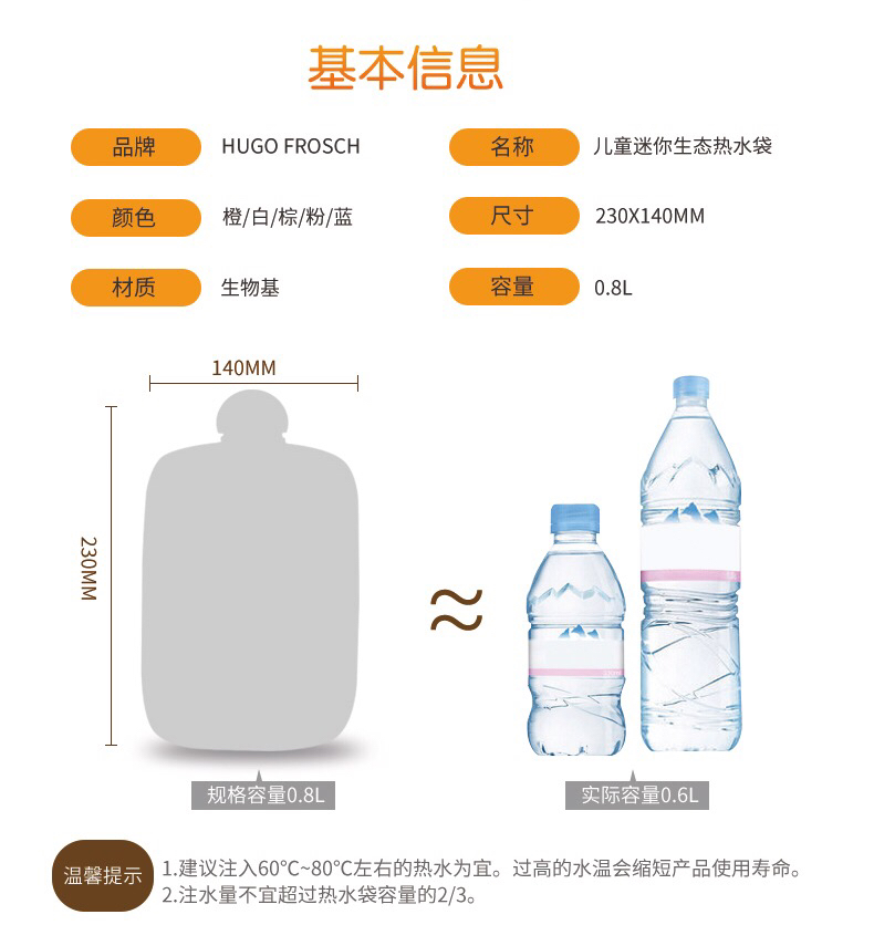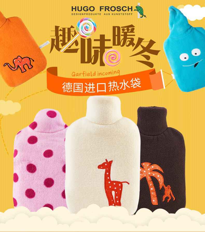 德国进口HUGO暖蛙充注水安全热水袋卡通儿童女学生热敷肚子暖手宝-不备注的随机发货-会员6折
