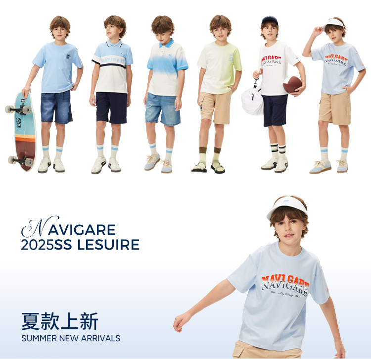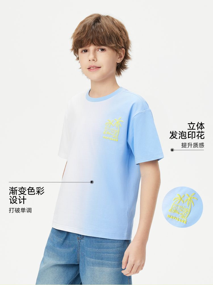 【纳维凯尔】【凉感 索罗娜】【120-165】Navigare意大利小帆船童装男童短袖渐变T恤