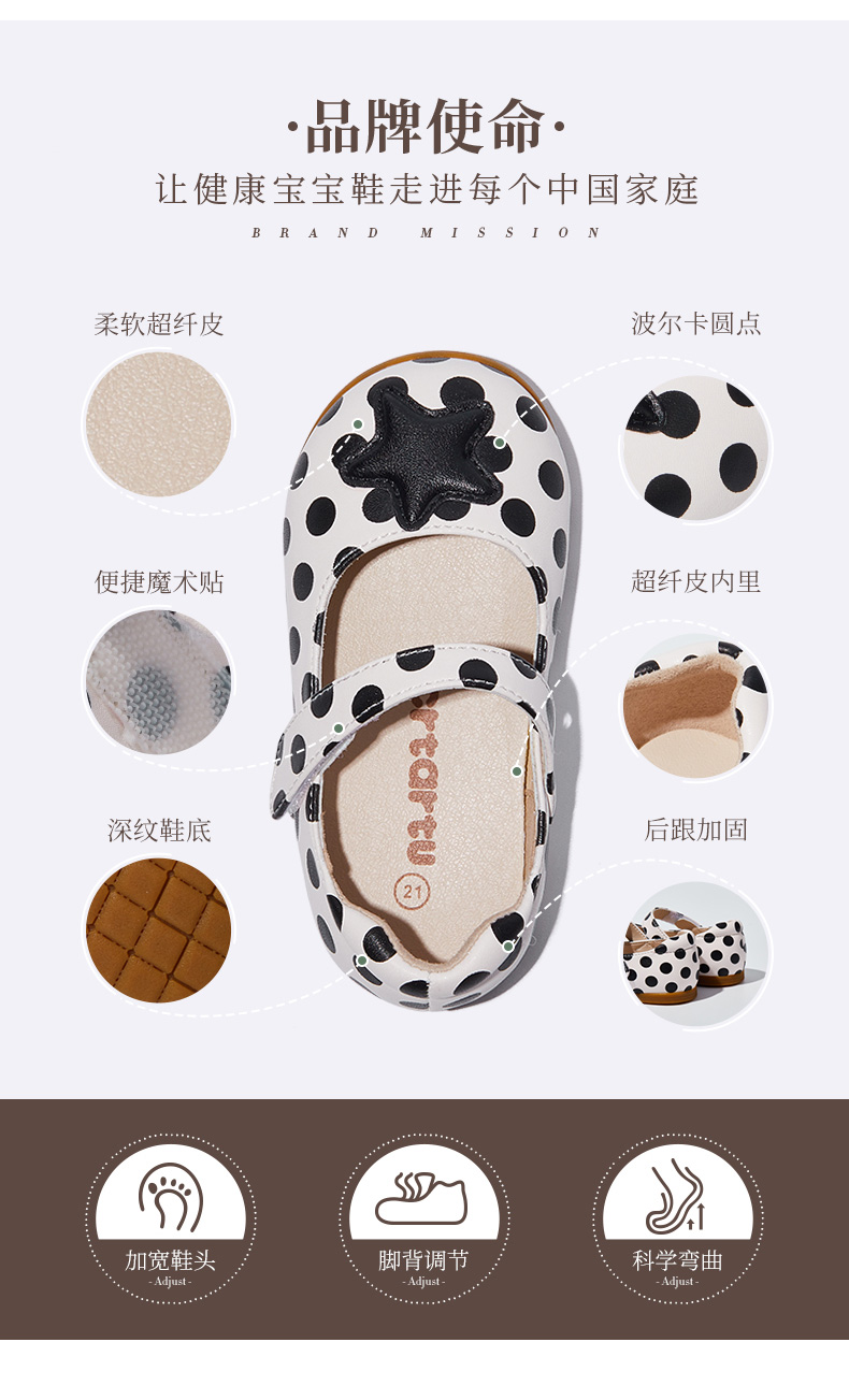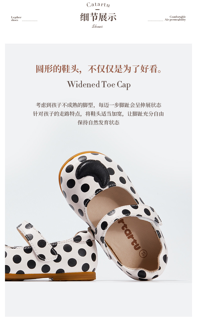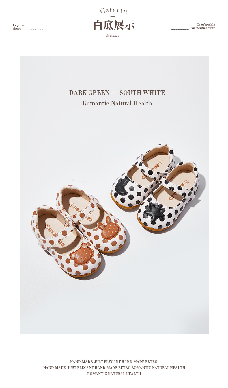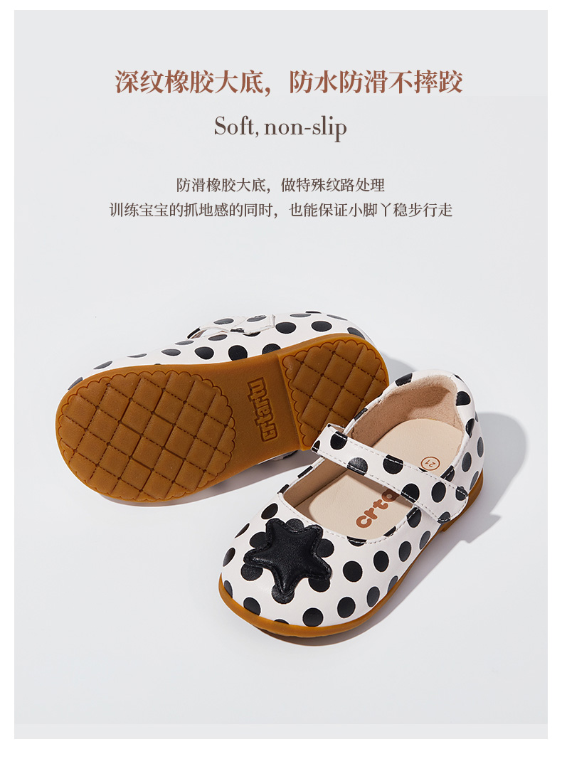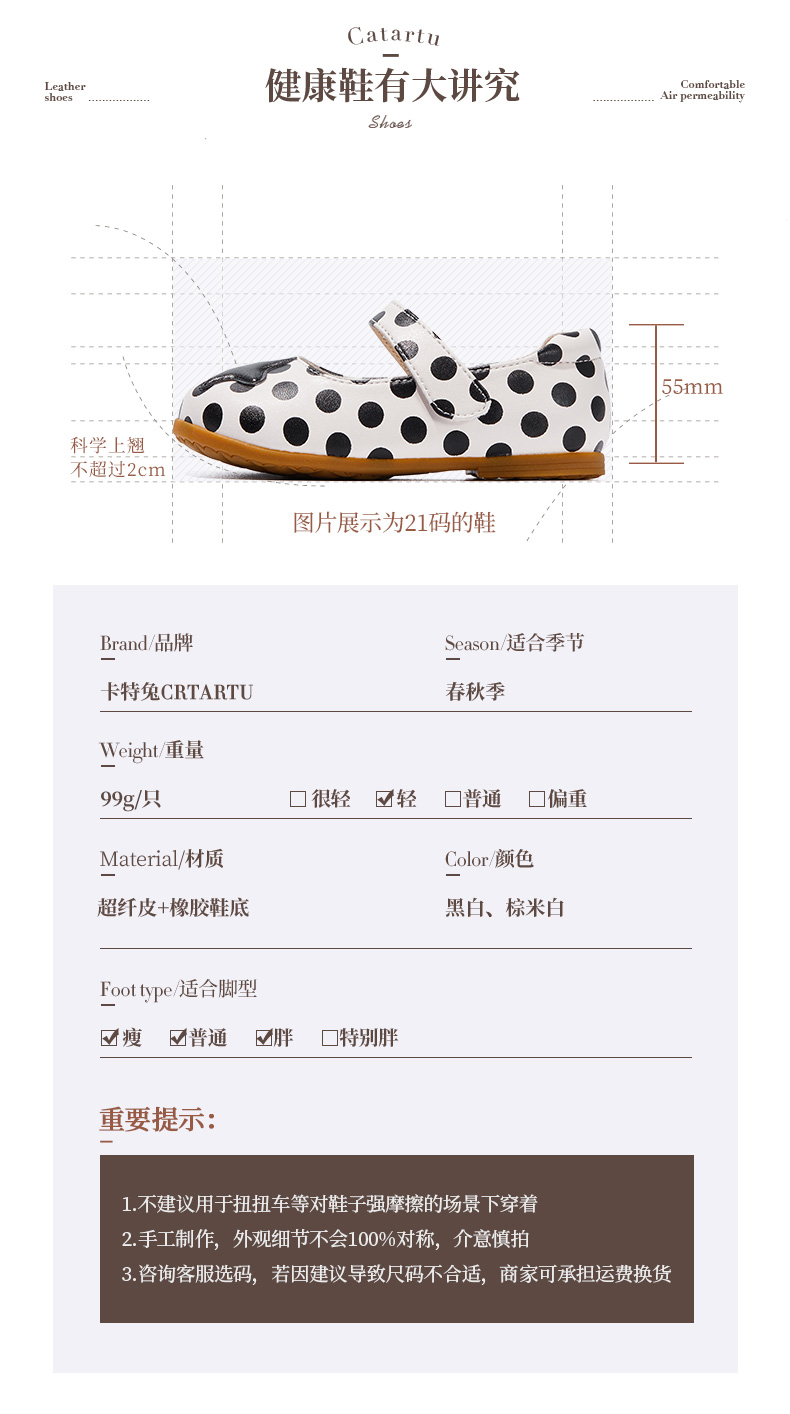 卡特兔春秋款宝宝摩登波点公主鞋 棕白/黑白 一段/二段