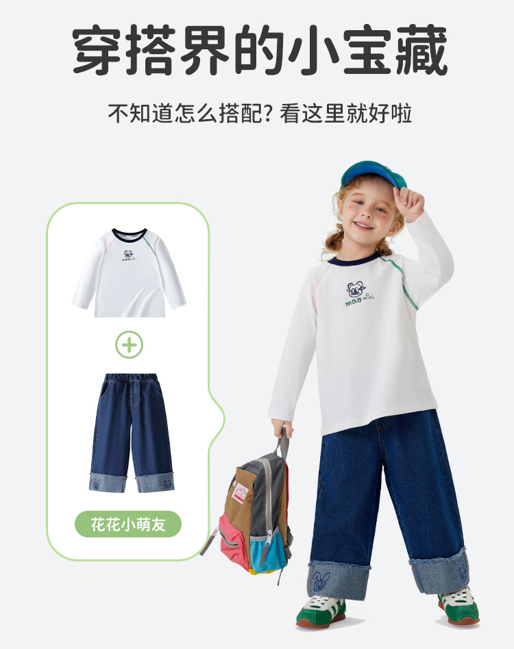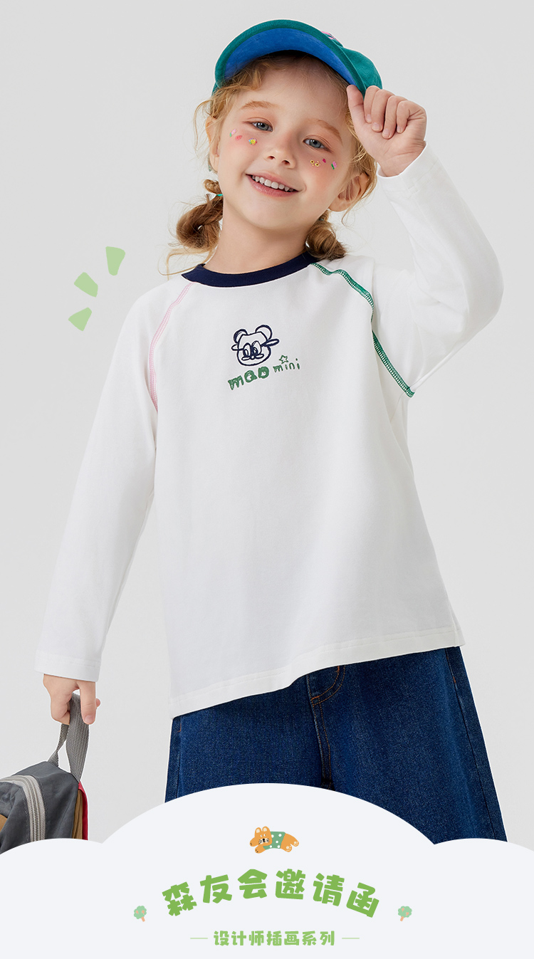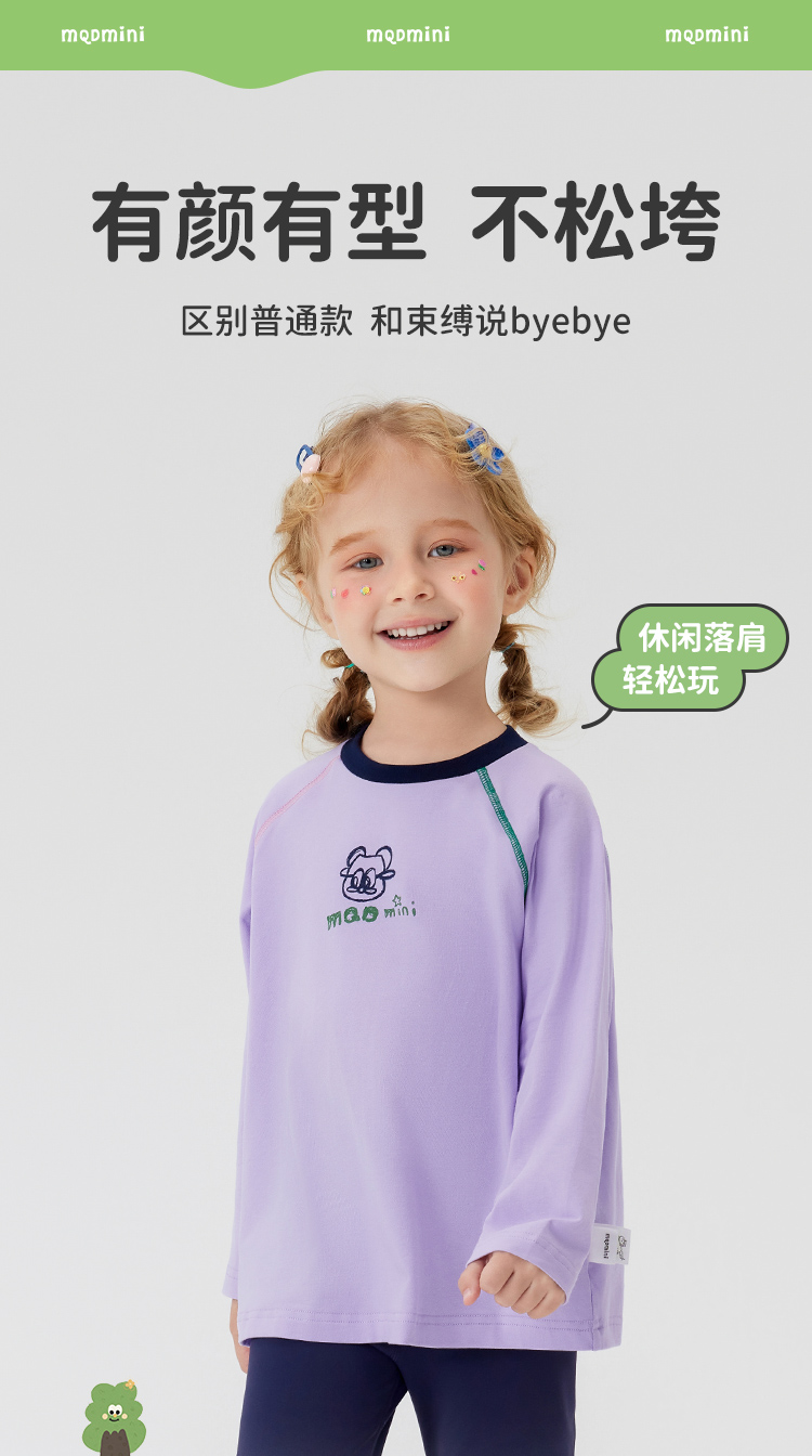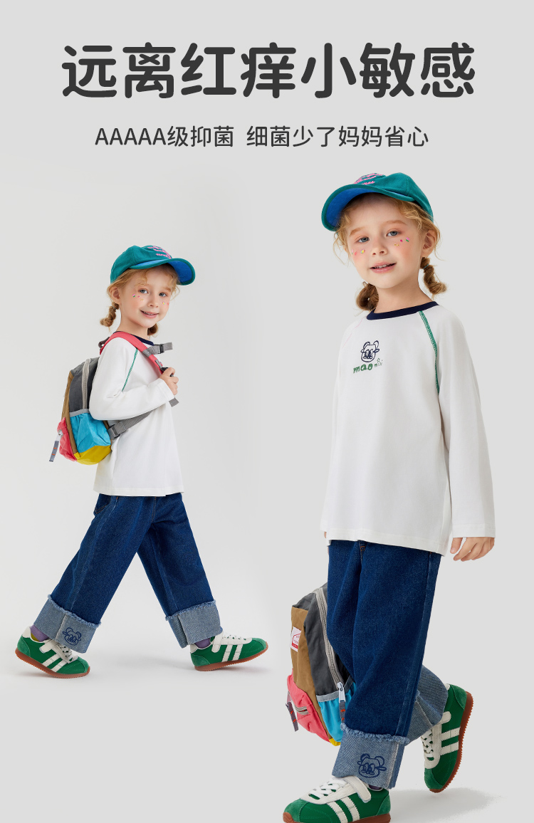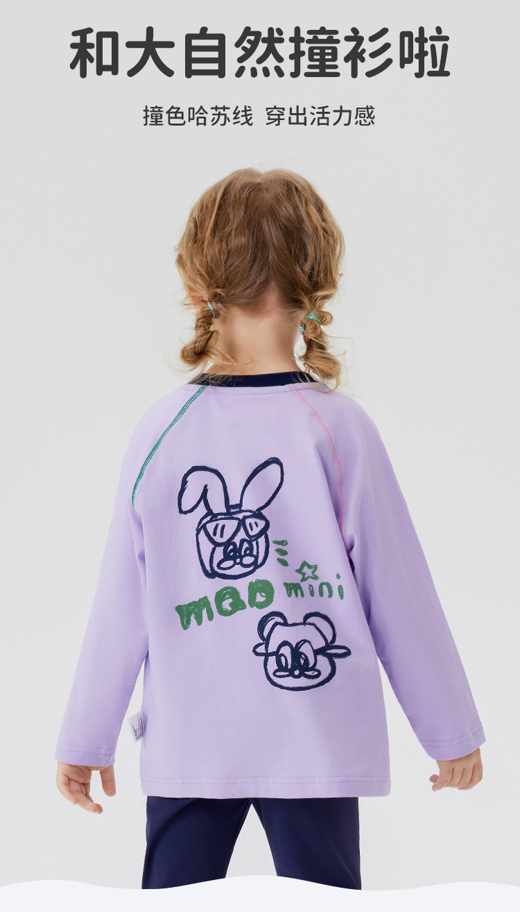 【男女同款】【5A抑菌】【90-140】【MQDmini】男女童春秋长袖t恤插肩袖上衣