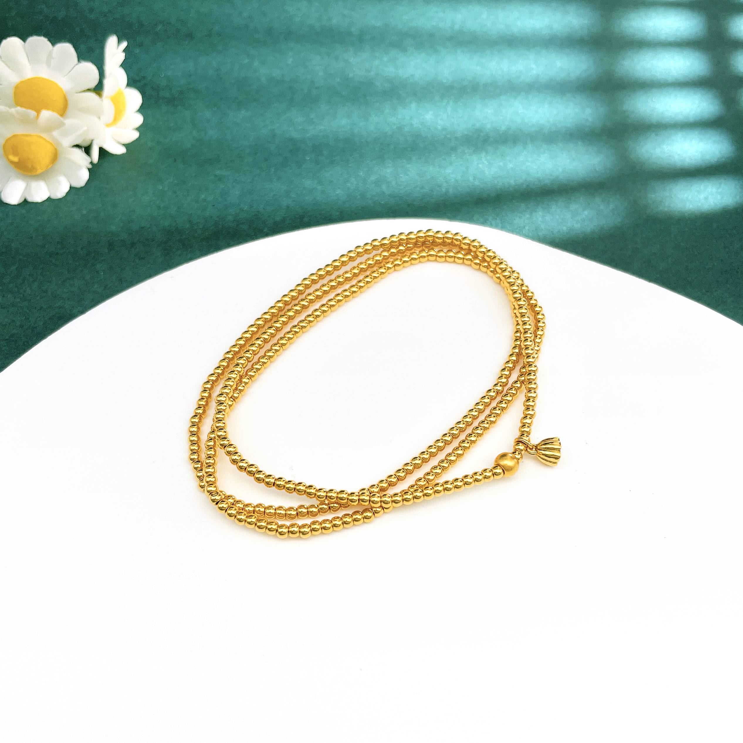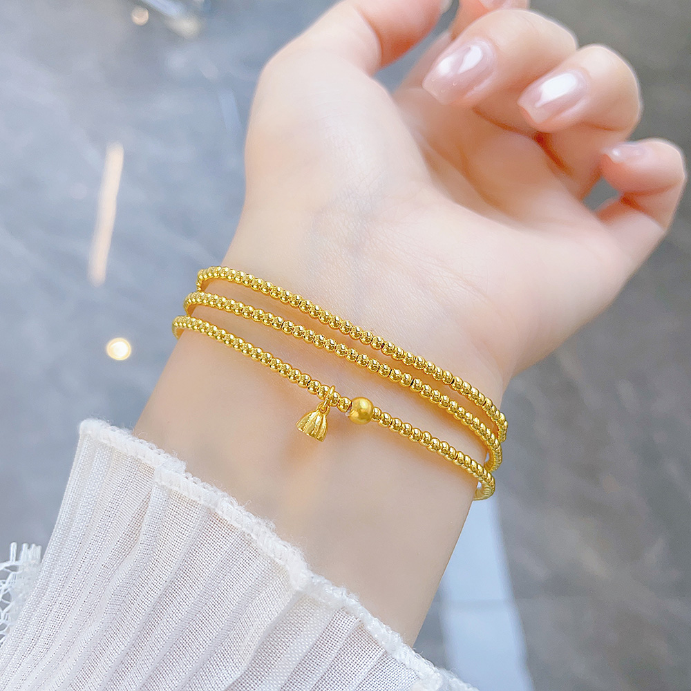 【限时克减150元】足金 #超轻 3D硬金空心好运莲莲莲蓬吊饰三圈幸运手串弹力绳成品手串(珠约2.1mm)(AK3DSC00018)(预售产品下单后不退款不退货不换货不补差价)