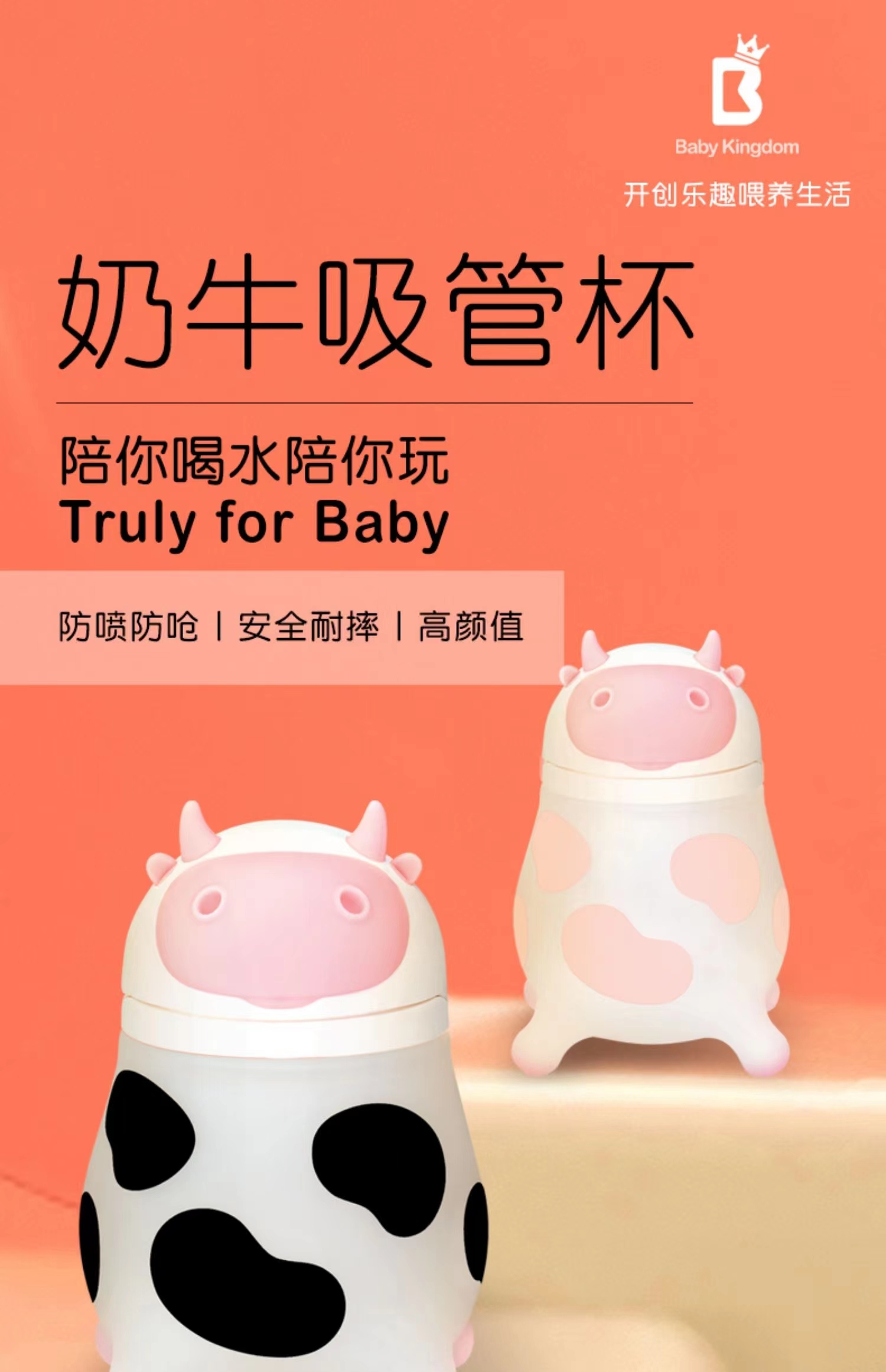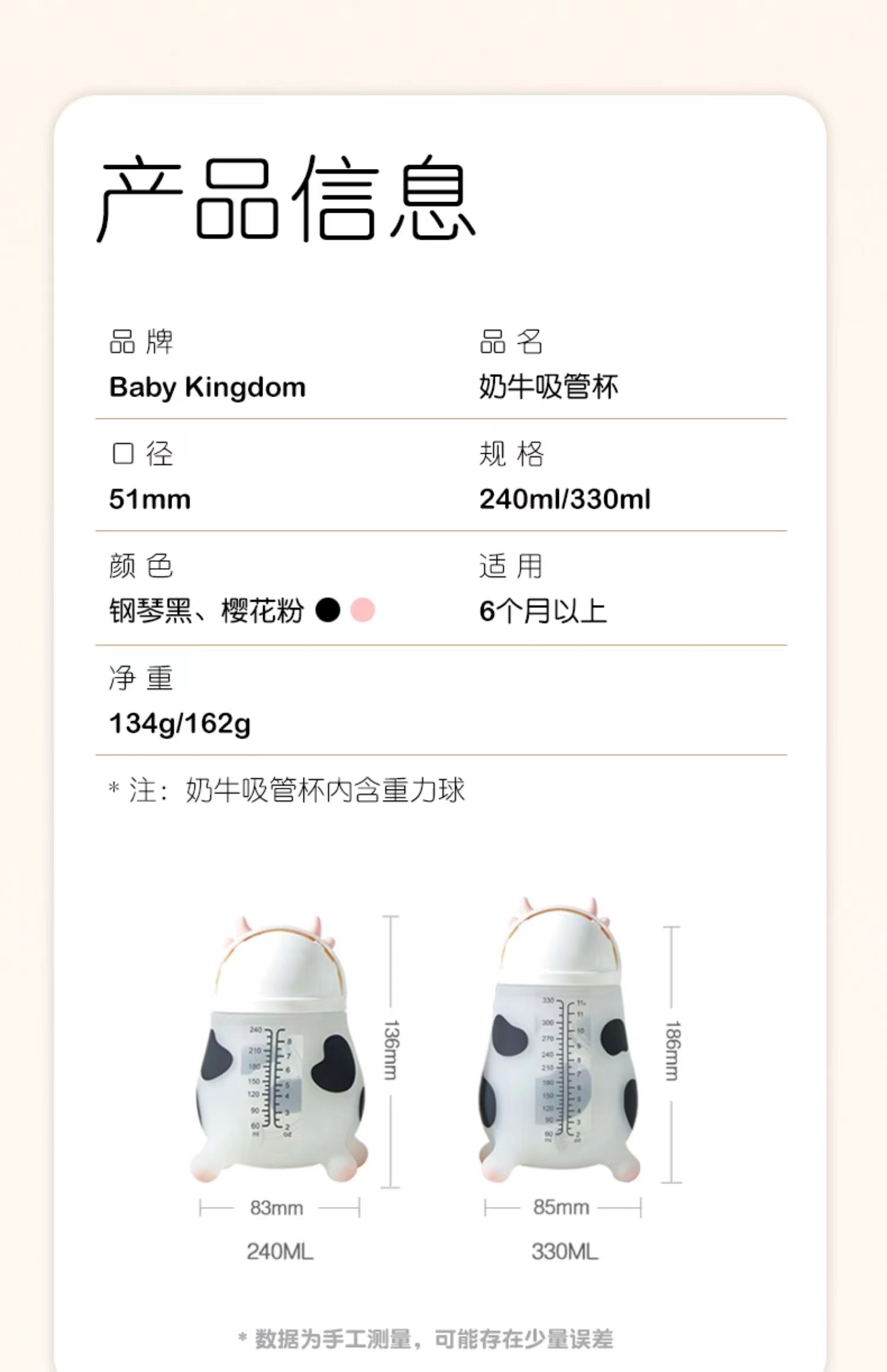 BK奶牛瓶GN1901P-L330ml/自带L号奶嘴-粉