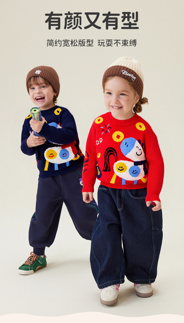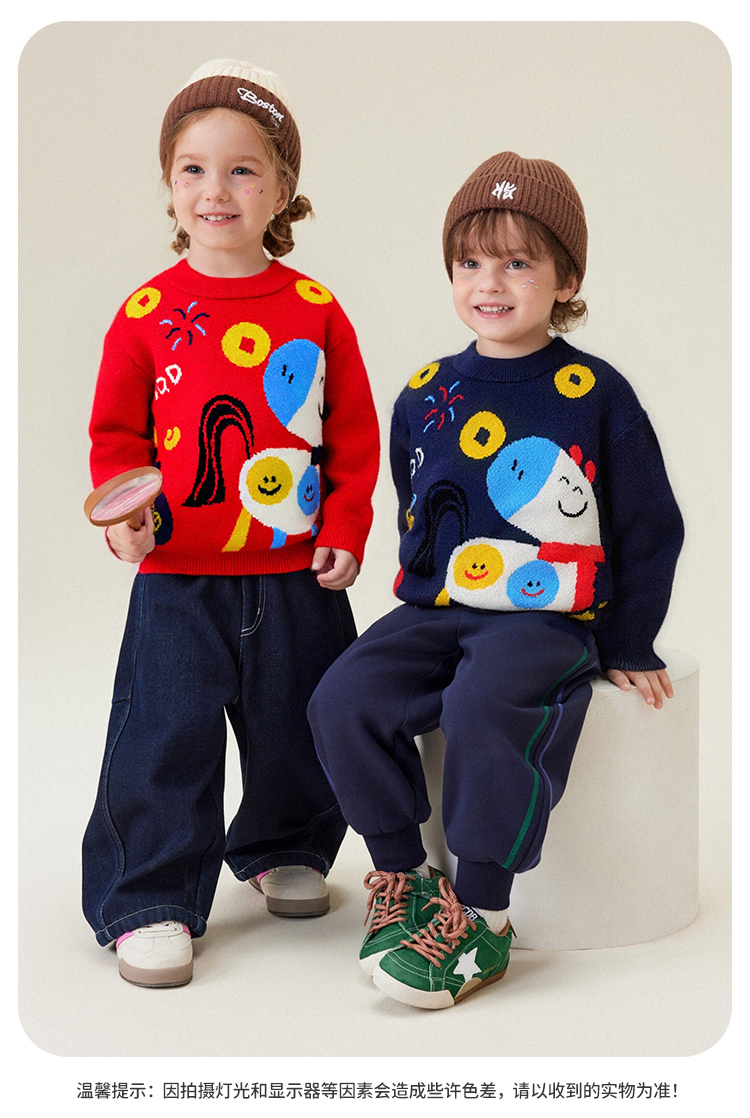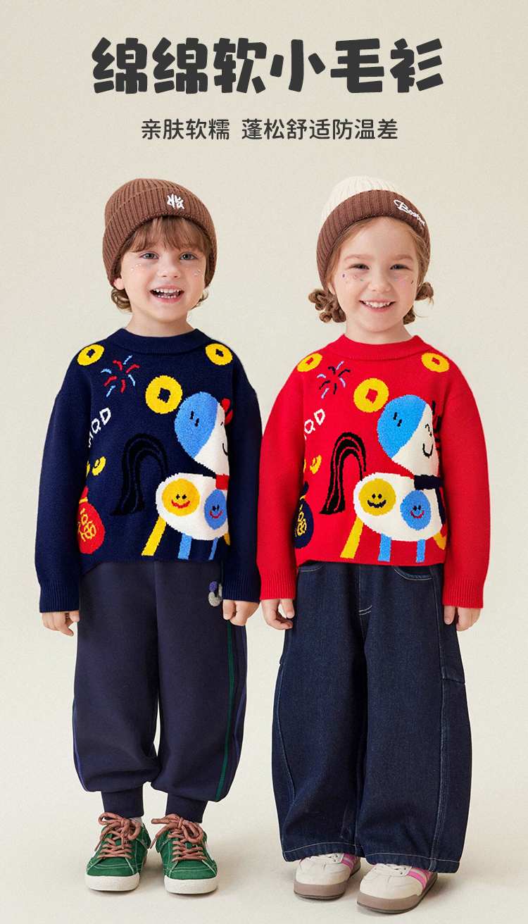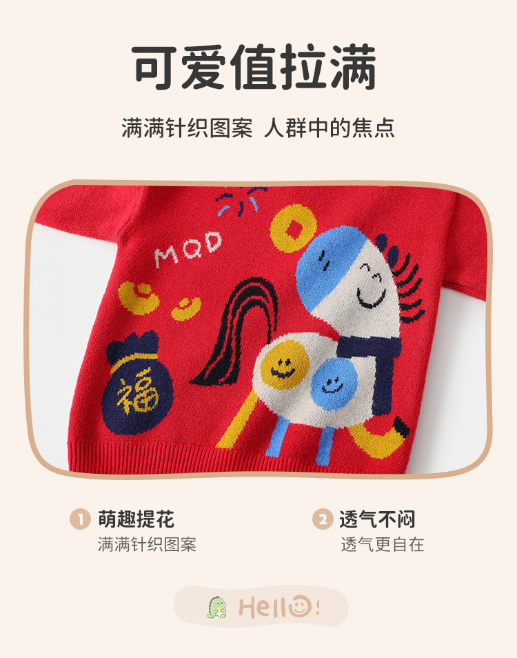 【90-140】【马上开心】【MQmini】男女童针织毛衫儿童卡通毛衣