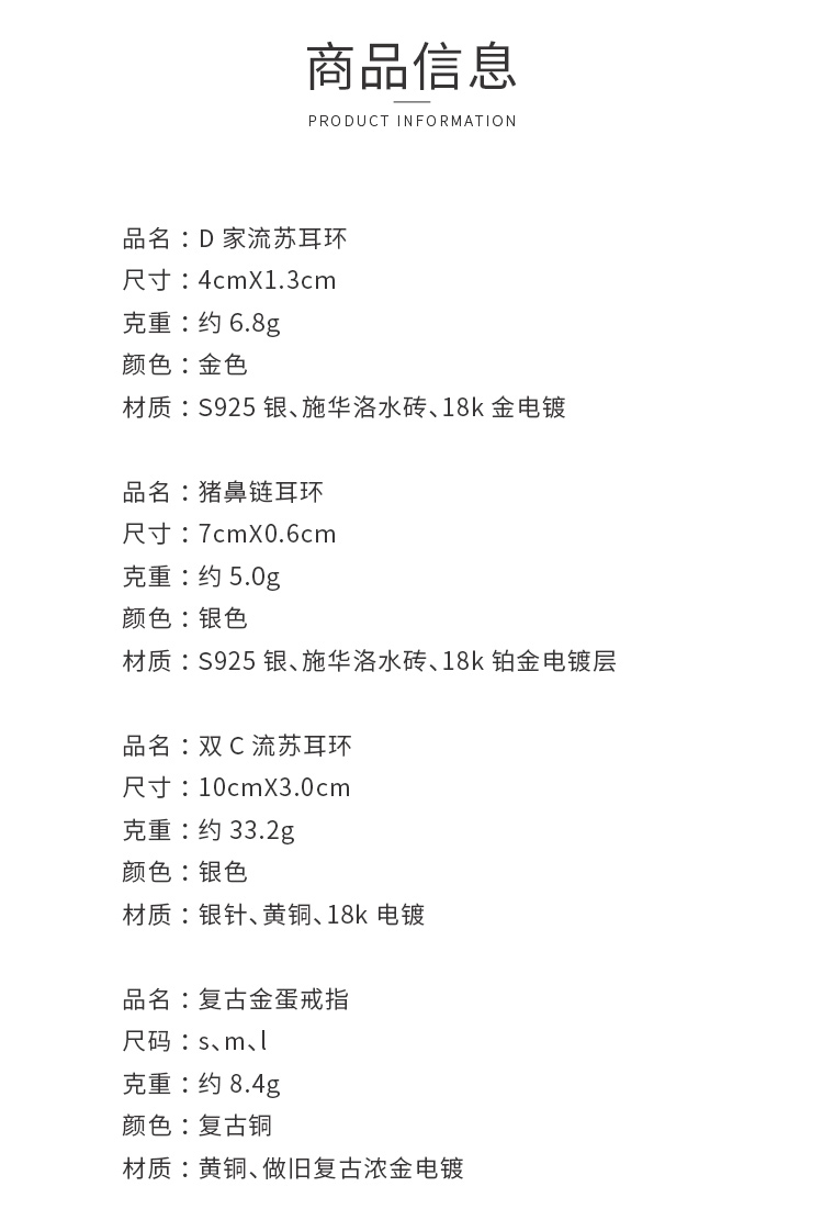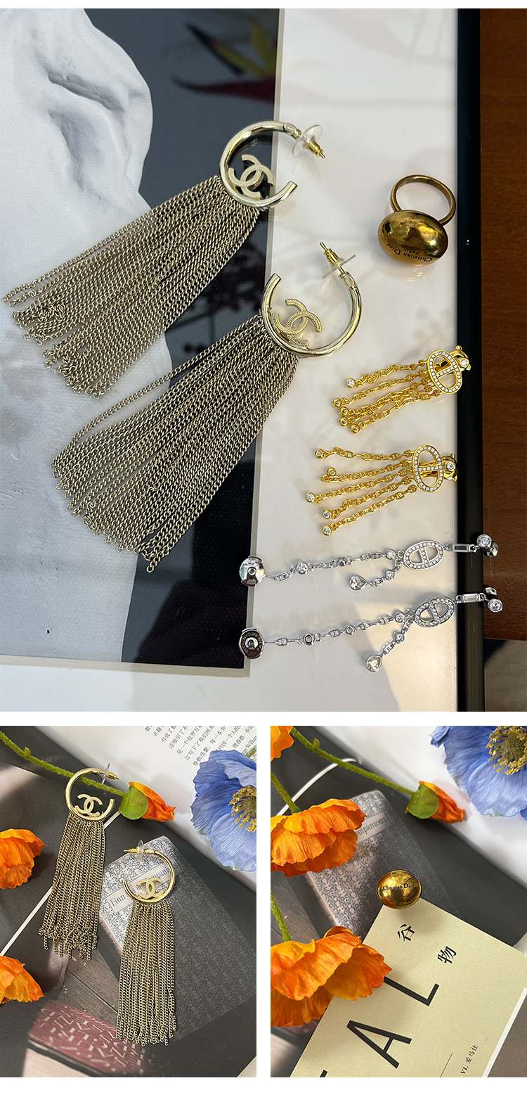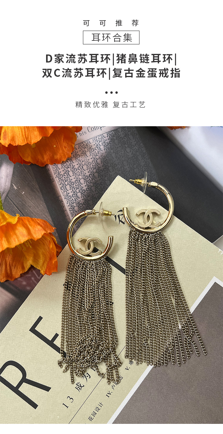 【活动商品,不退不换】可可推荐 耳环合集 D家流苏耳环|猪鼻链耳环|双C流苏耳环|复古金蛋戒指 精致优雅 复古工艺