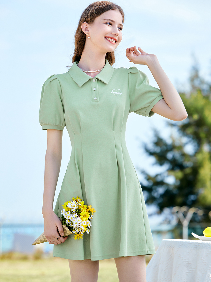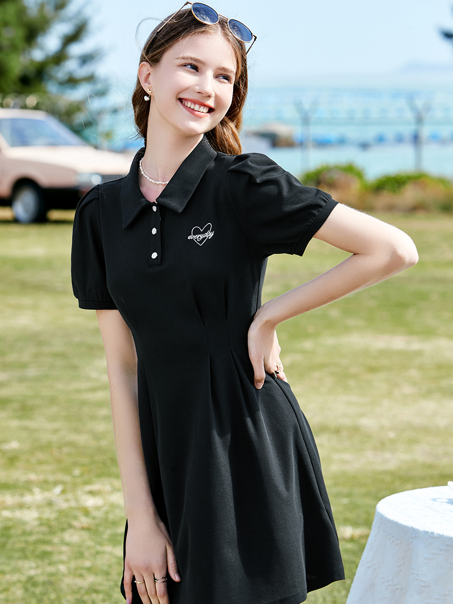 【百图lulu定制】【减龄心机POLO裙】小个子显高 修身显瘦polo领通勤 减龄短袖连衣裙