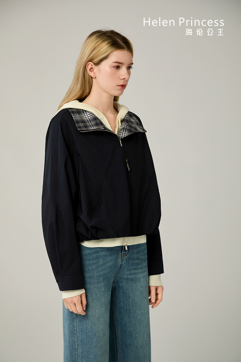 格纹拼接飞行夹克-------03631101