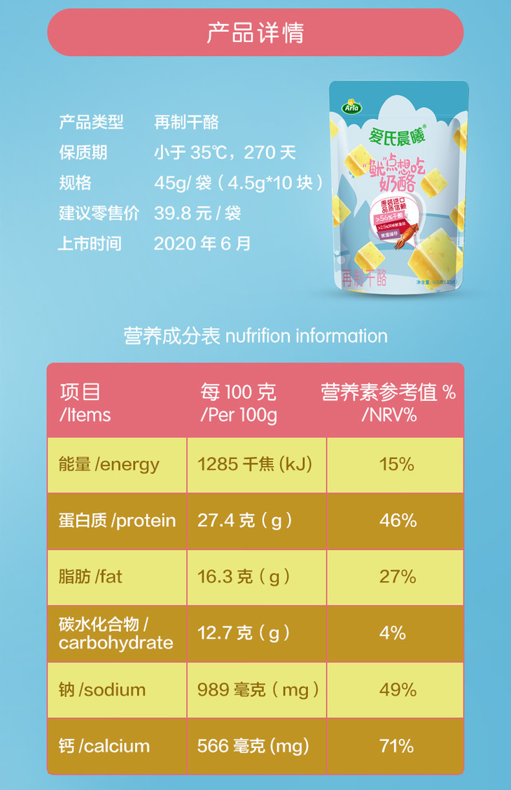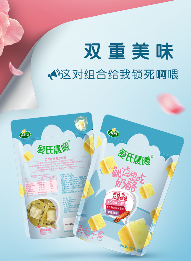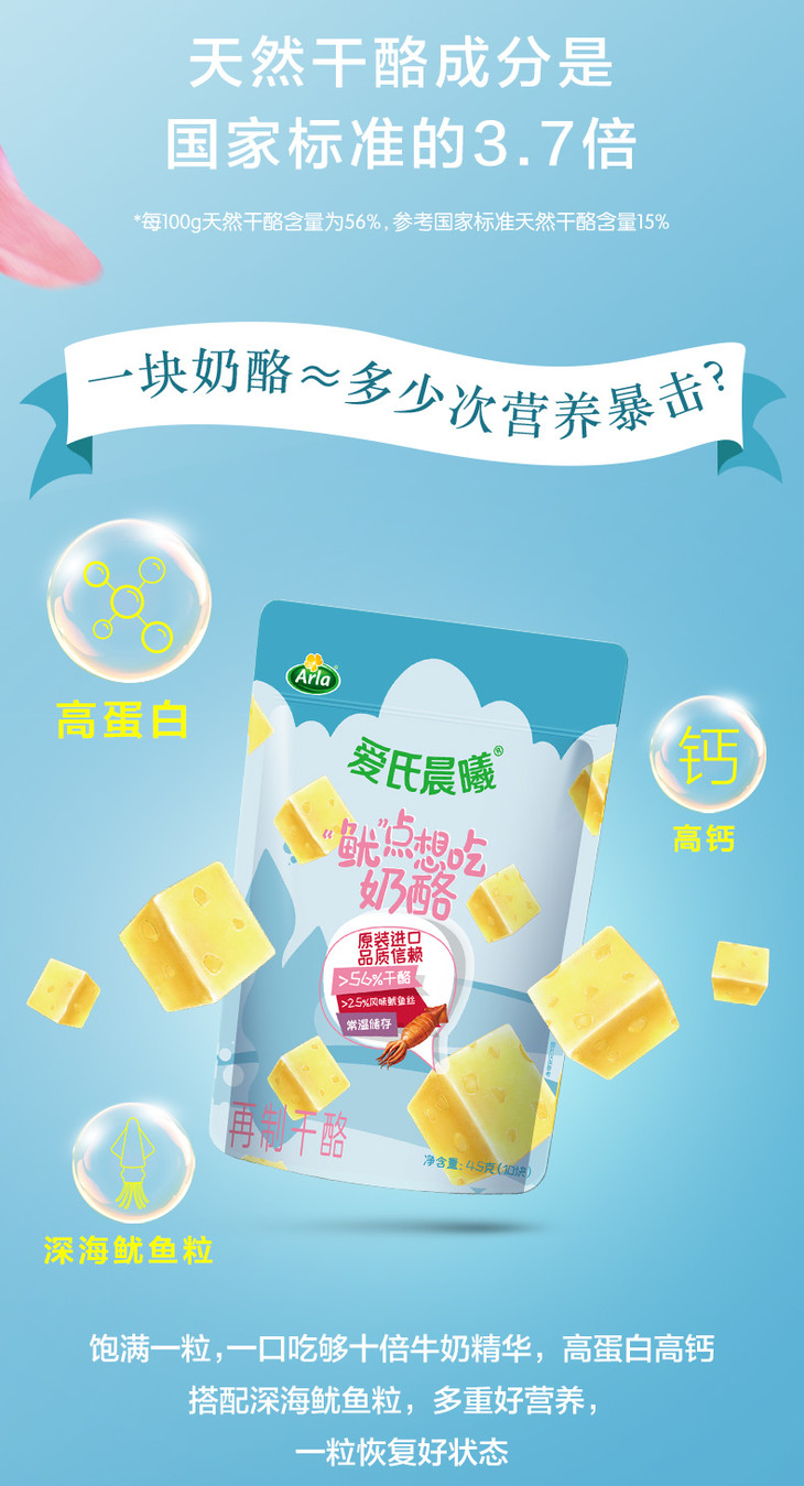 爱氏晨曦arla鱿鱼奶酪干酪婴儿宝宝低盐零食哄娃无多添加便携包装【爱氏晨曦】