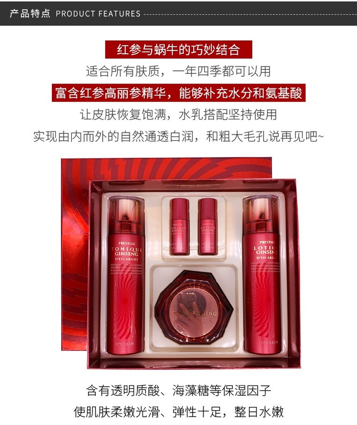 【现货】韩国 Its skin/伊思 红参/蜗牛清爽滋润三件套盒 水乳面霜