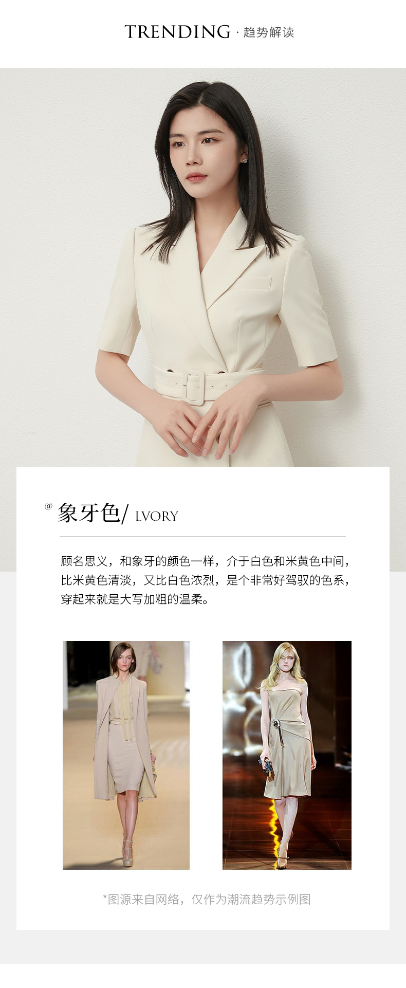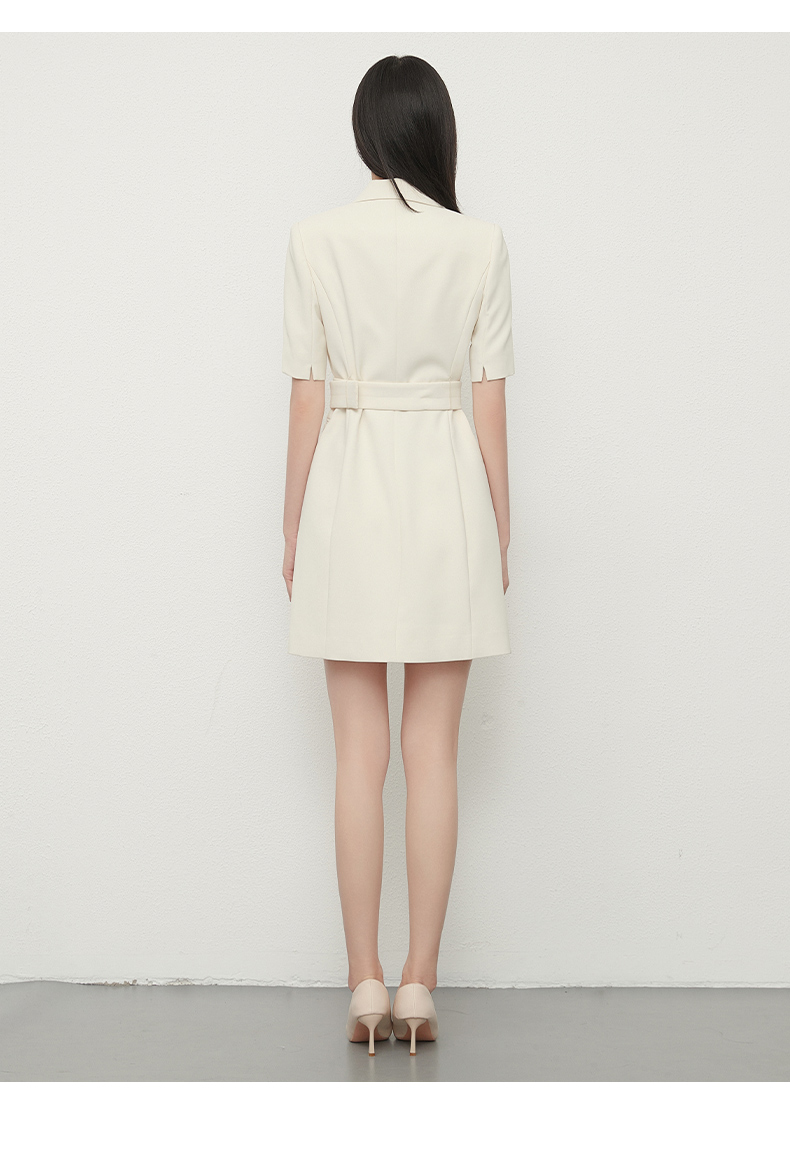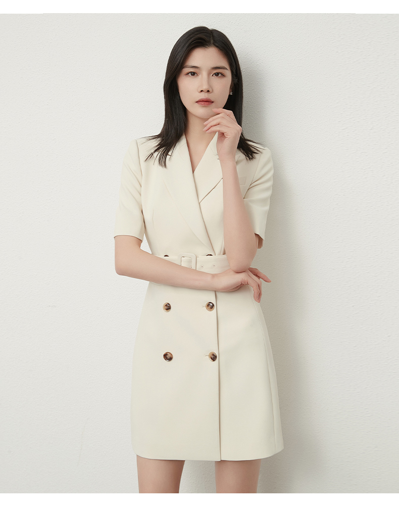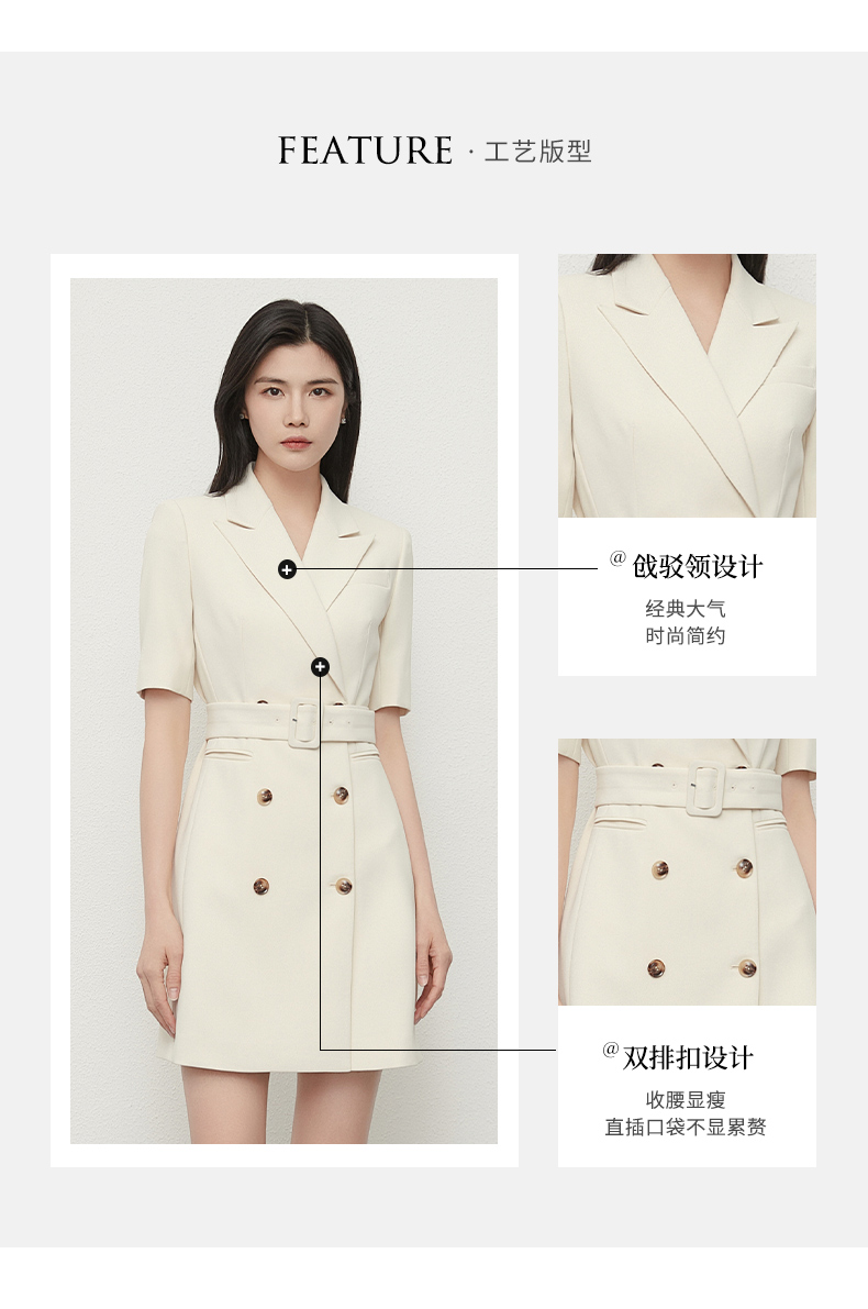 IWY/夏季短袖杏色西装连衣裙女薄款收腰显瘦气质播音主持人正装女Q13248