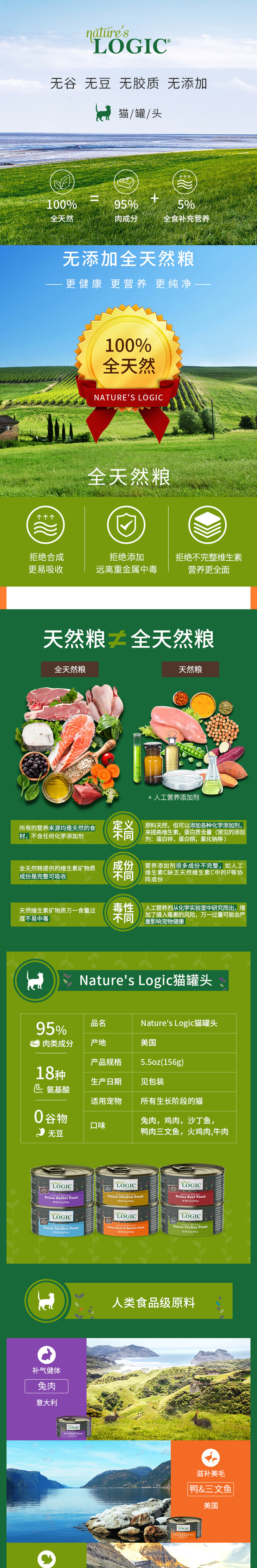 美国 Nature’s Logic 自然逻辑 猫咪主食罐 不含胶 高肉含量 156g