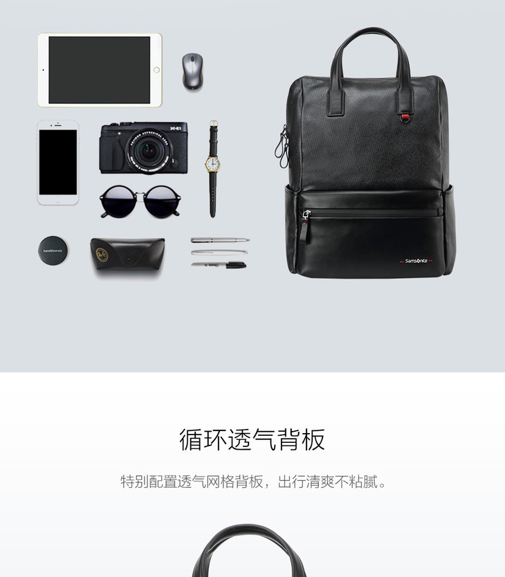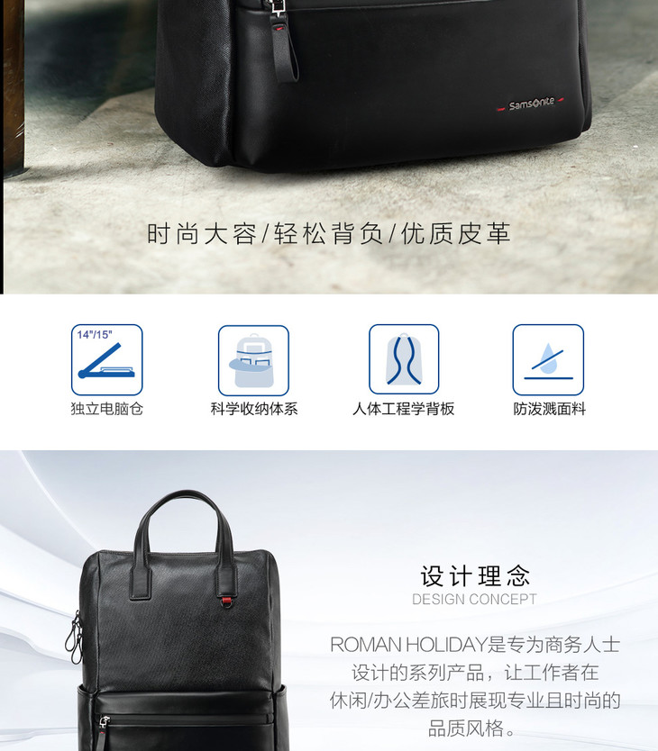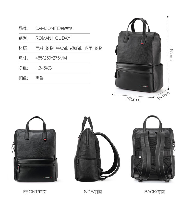 新秀丽商务休闲双肩包 三层收纳 全皮搭配 彰显品质 BW3*009