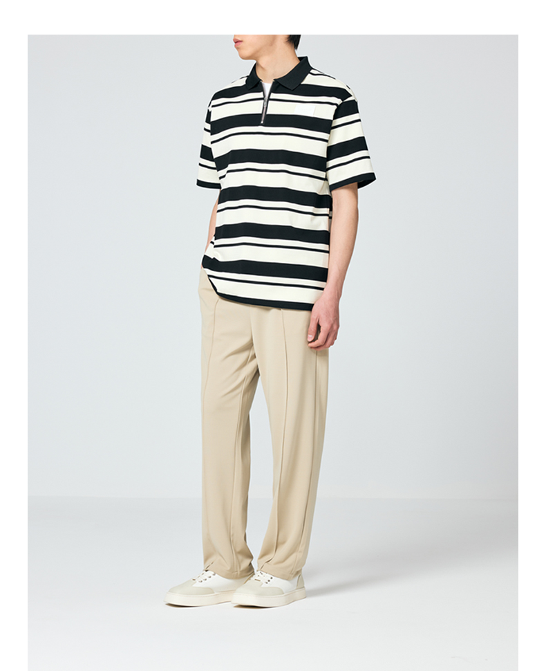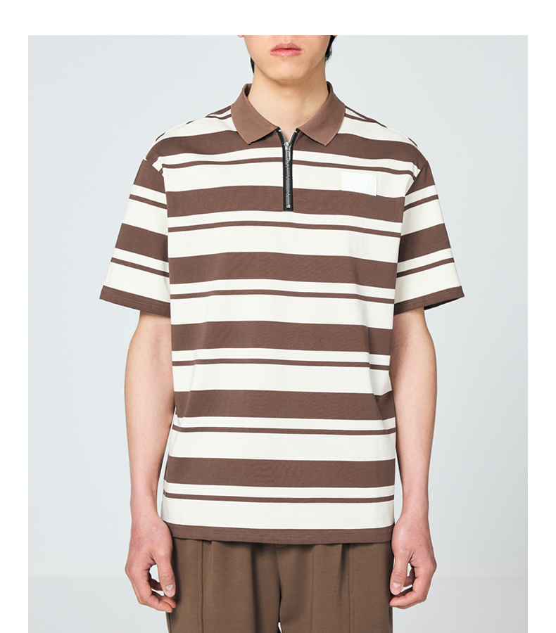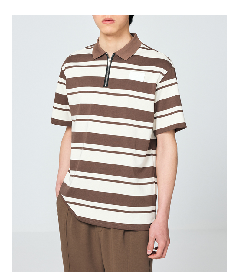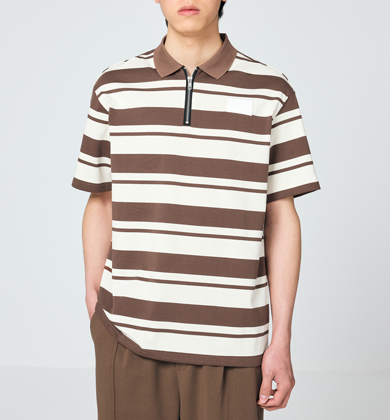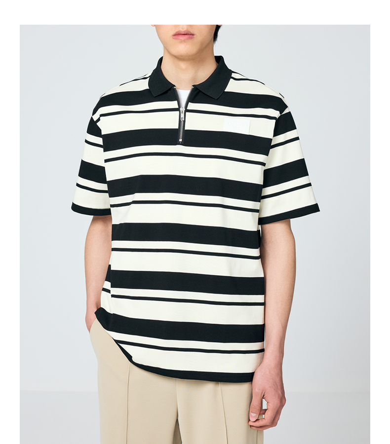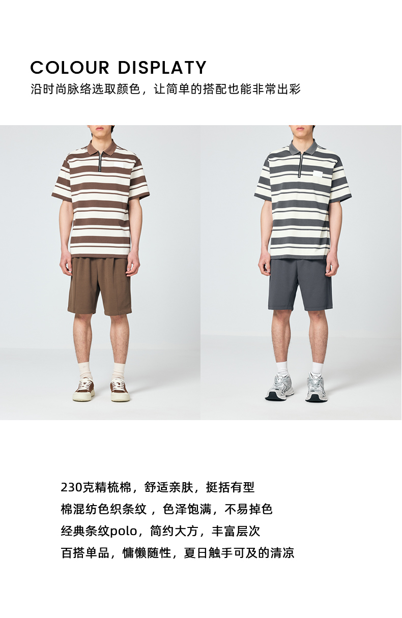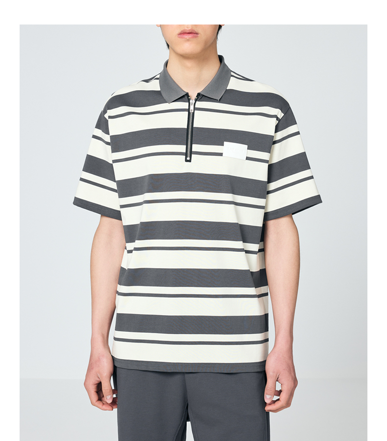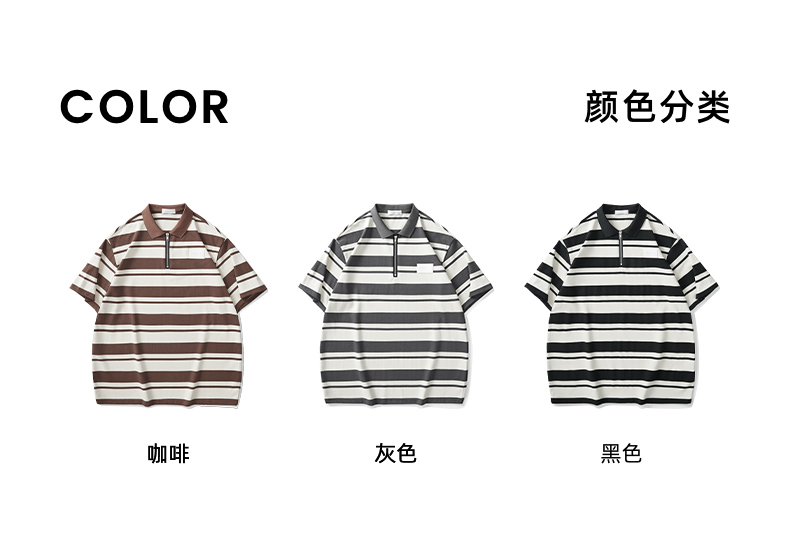 墨麦客男装撞色条纹polo衫男夏季拉链门襟男士短袖t恤70930