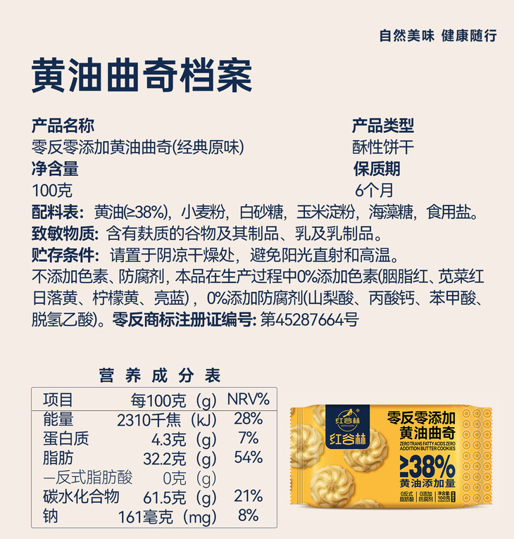 【0反0添加】红谷林黄油&咖啡曲奇 纯正奶香 原味咖啡味饼干早餐下午茶办公室解馋休闲零食小吃 100g/袋