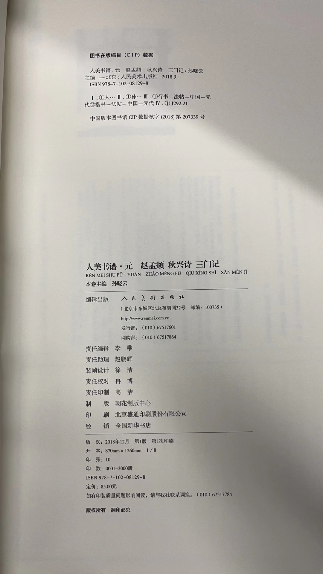 人美书谱-行书-元-赵孟頫 秋兴诗 三门记【现货包邮】RM0097