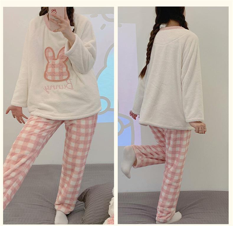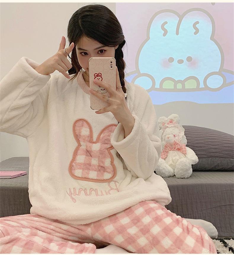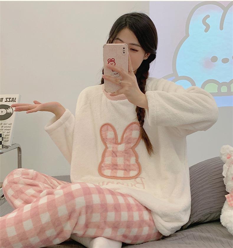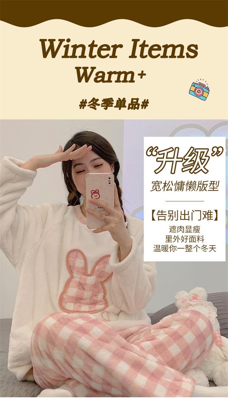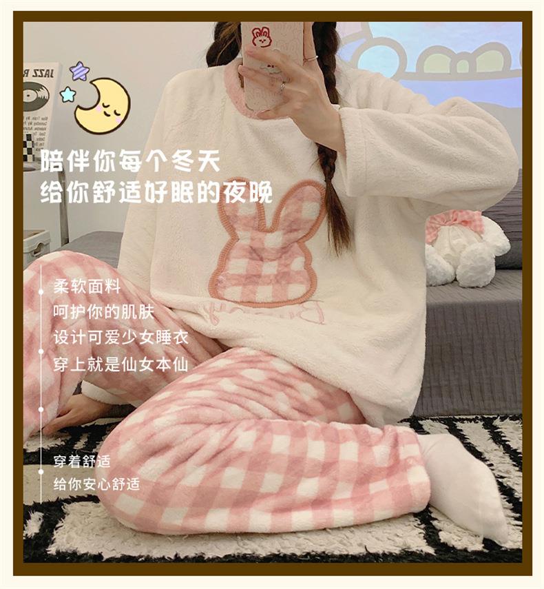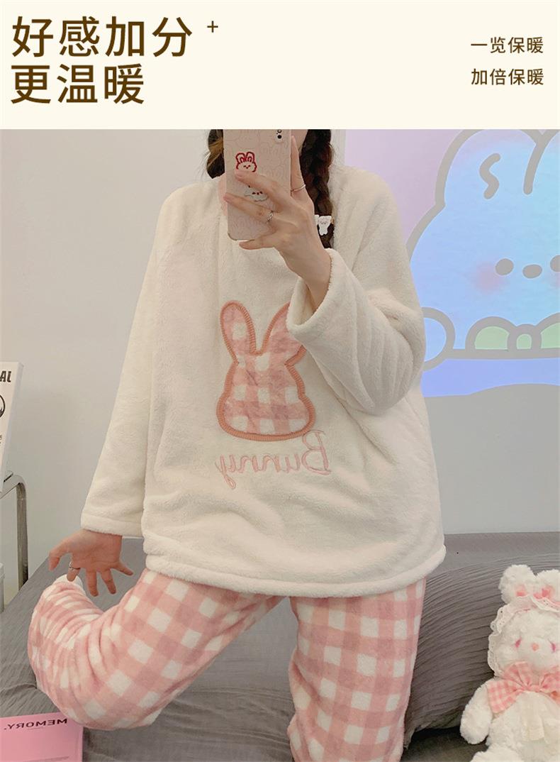 冬季珊瑚绒睡衣女秋冬季加厚加绒冬天法兰绒套装家居服2023年新款