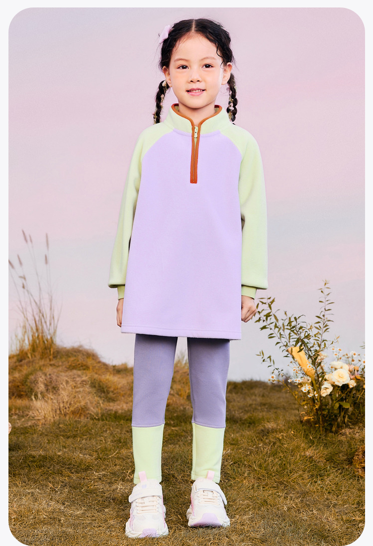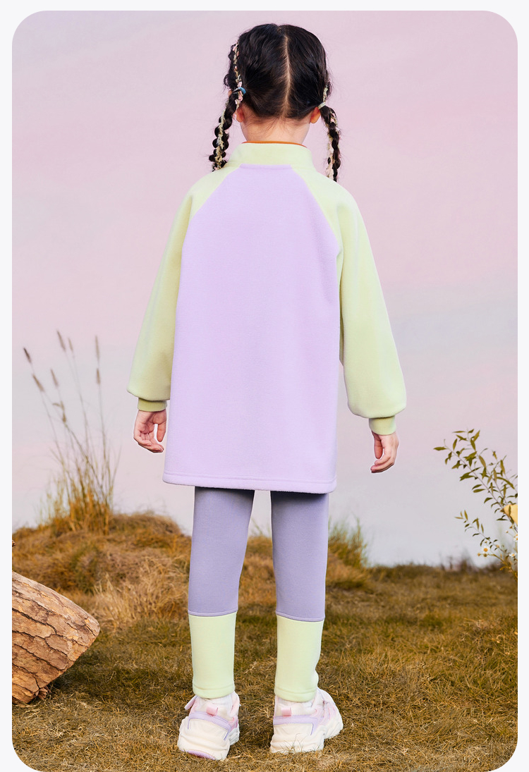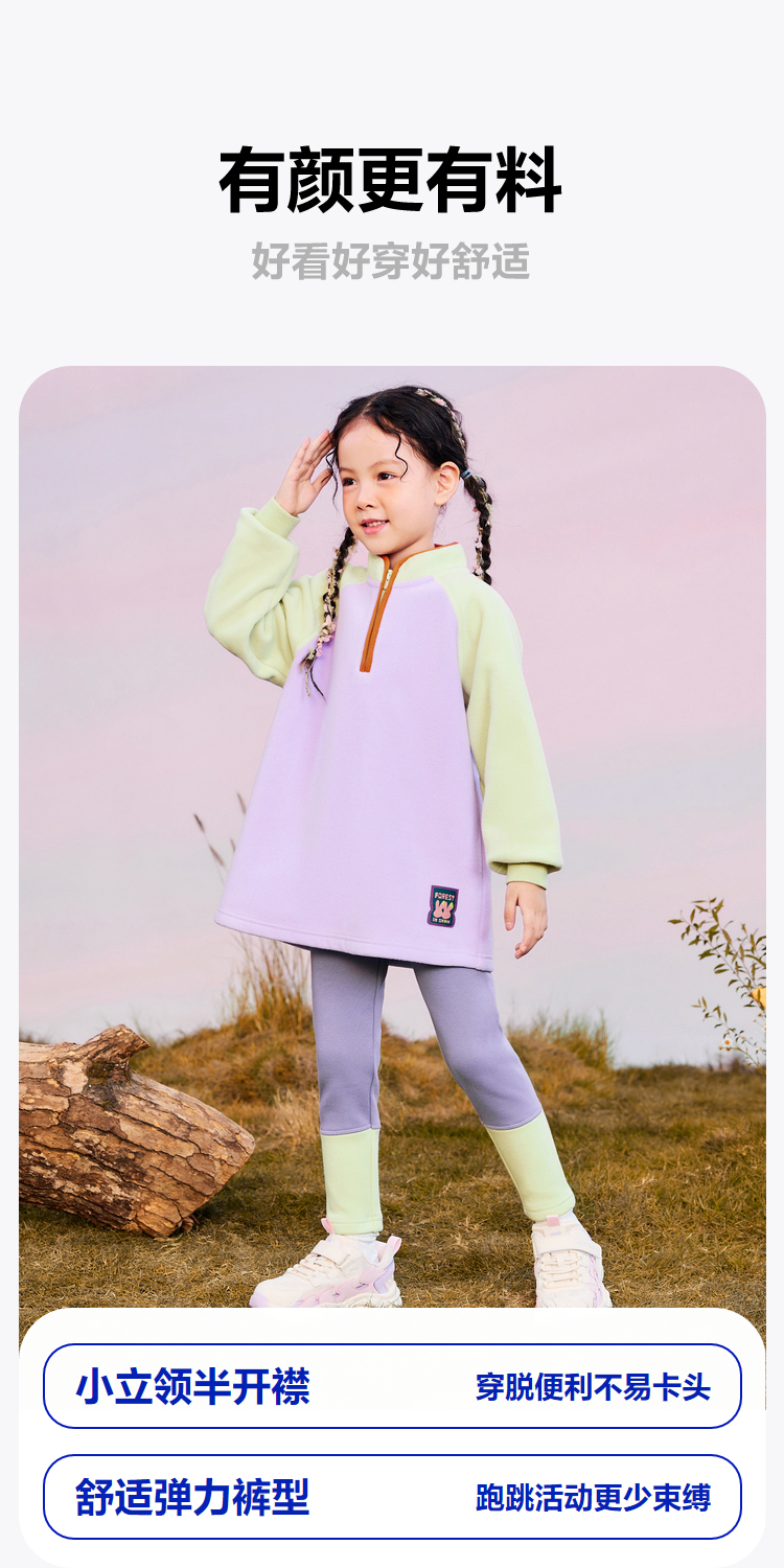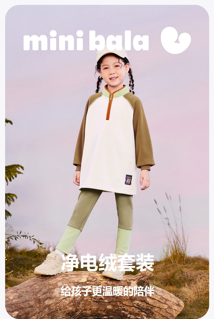 迷你巴拉抗静电摇粒绒套装男女童柔软保暖撞色秋冬套装