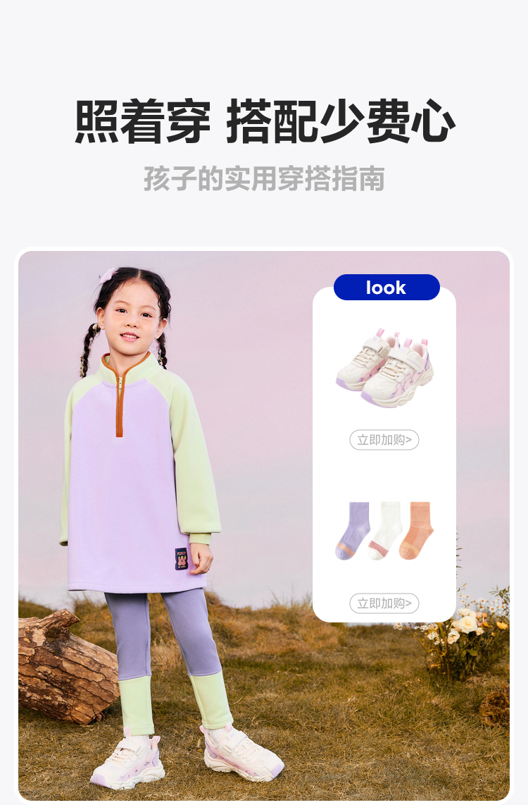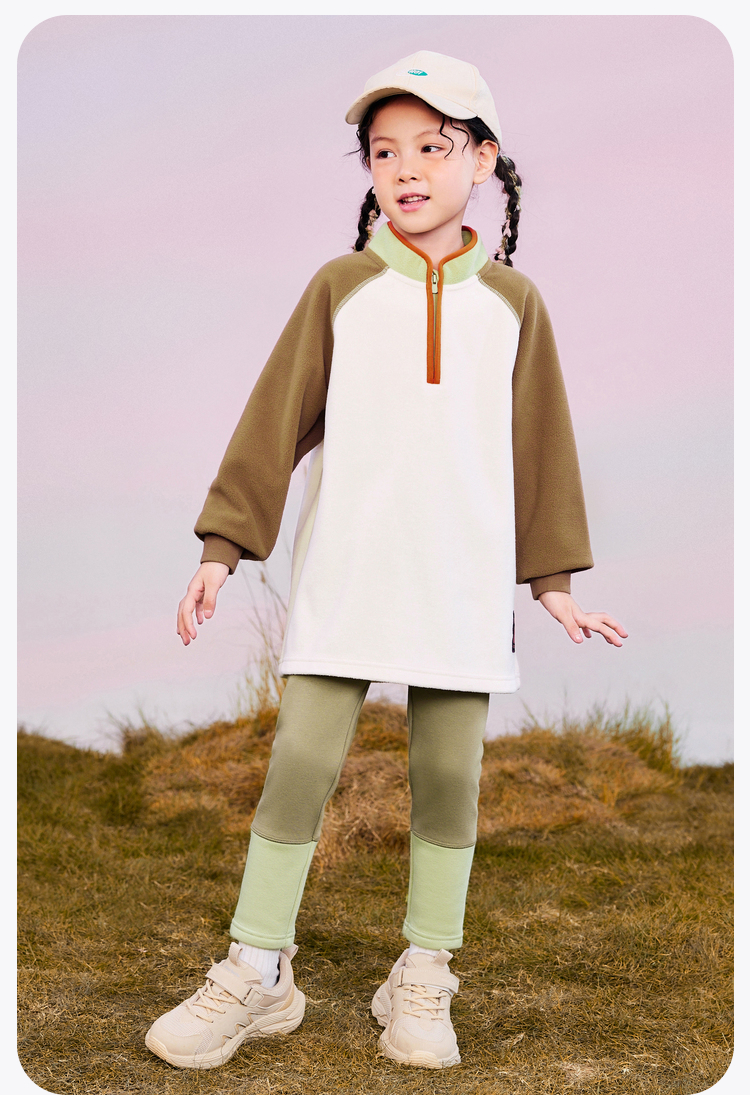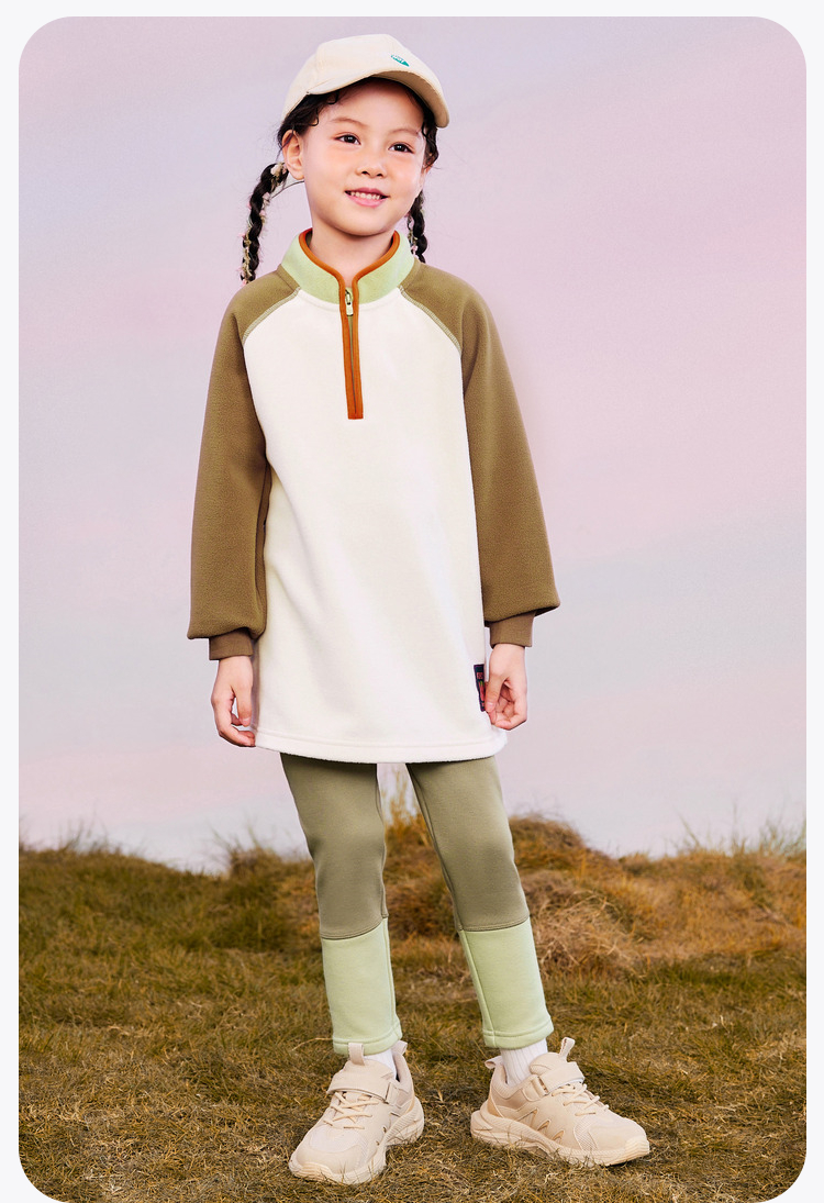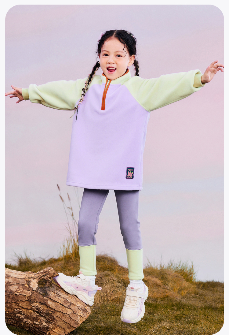 迷你巴拉抗静电摇粒绒套装男女童柔软保暖撞色秋冬套装