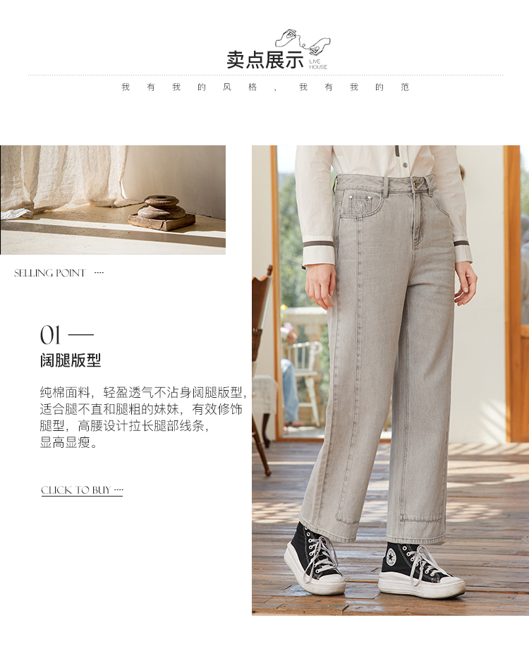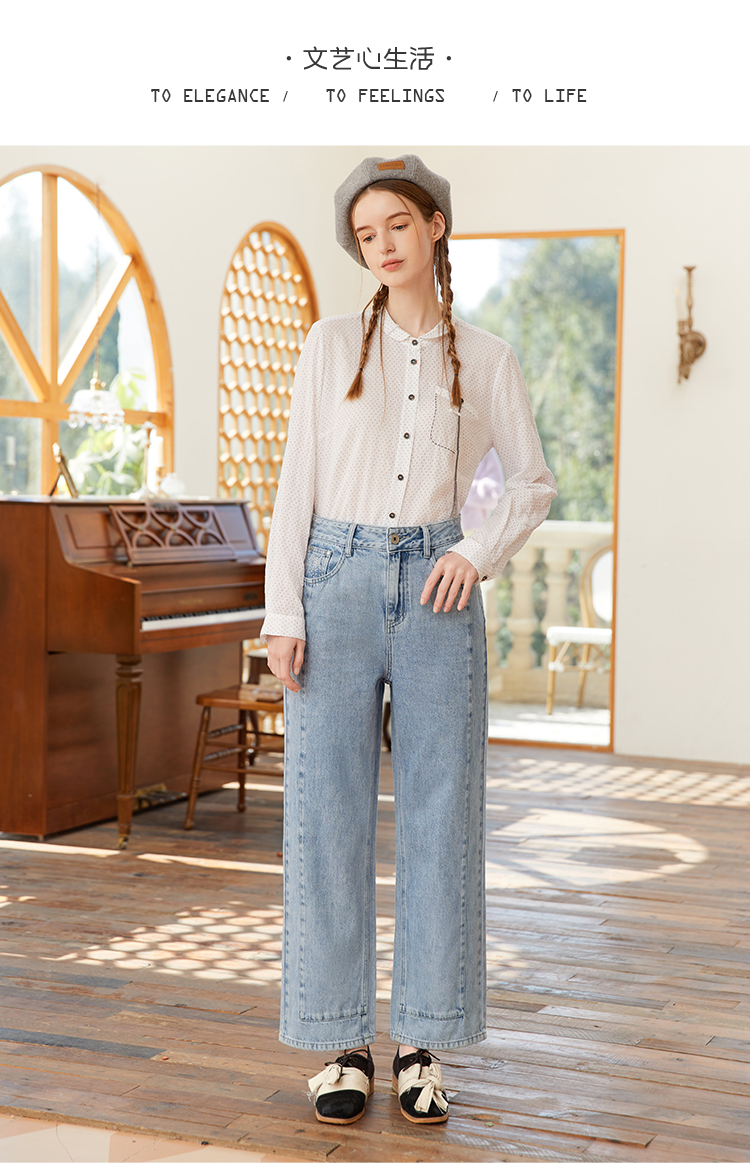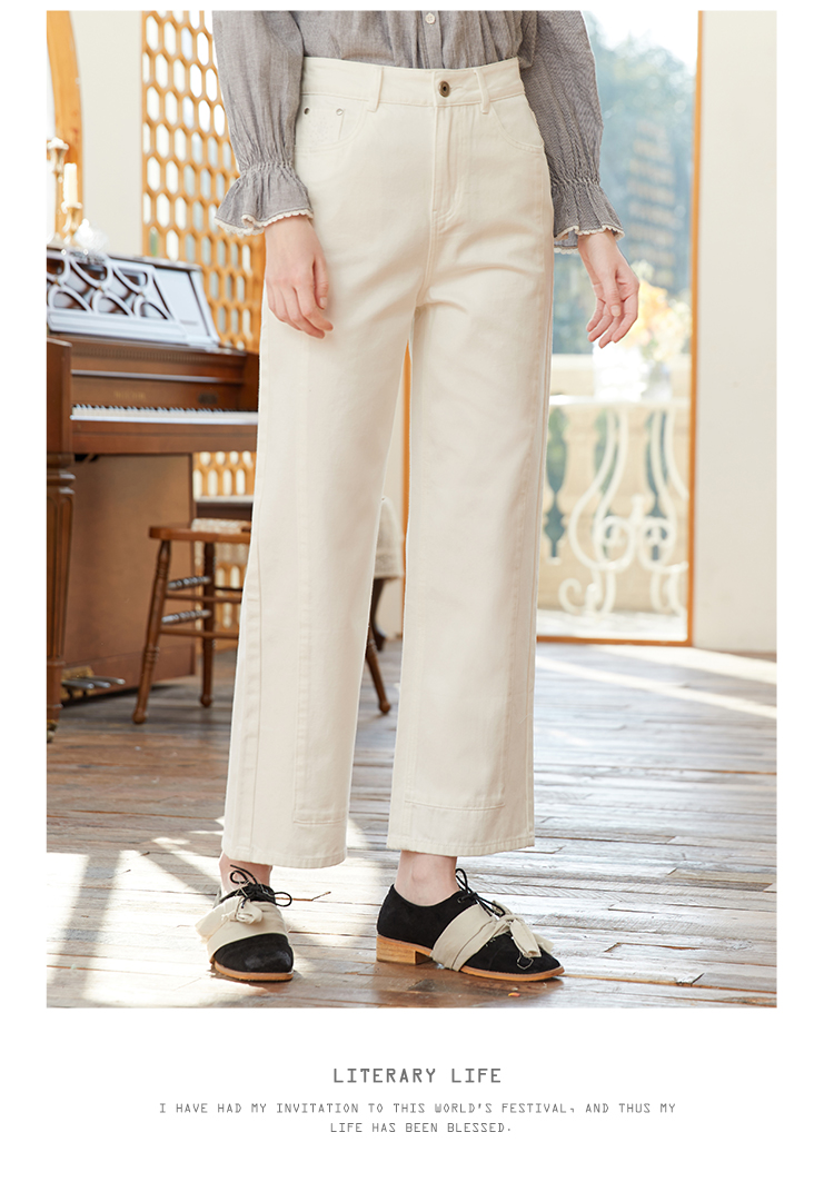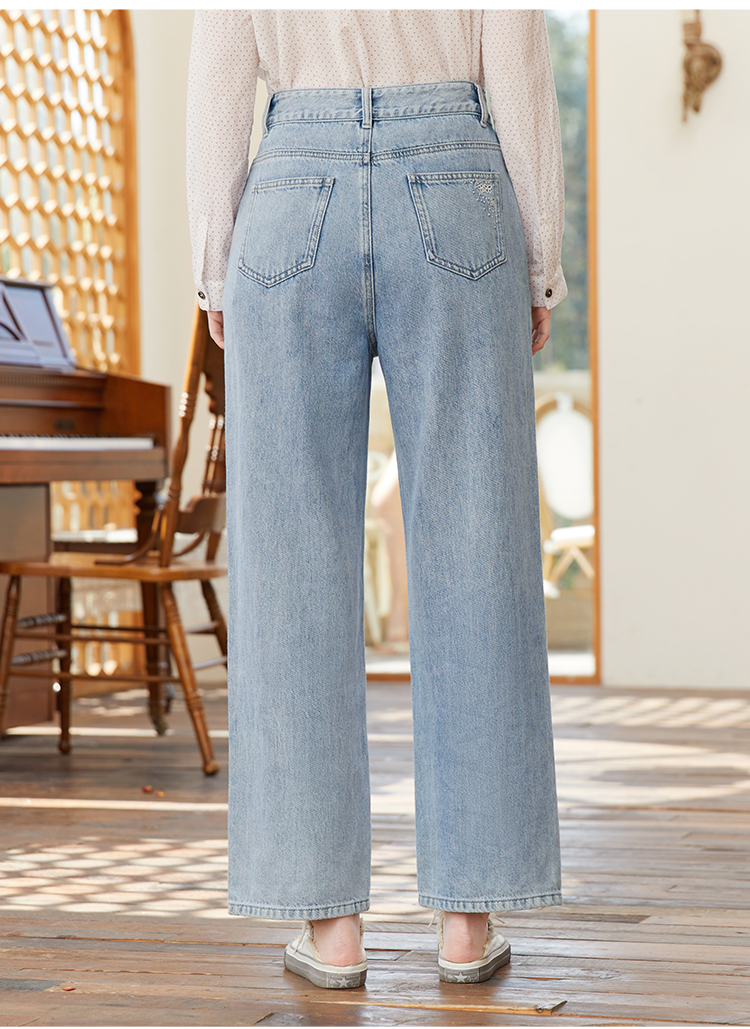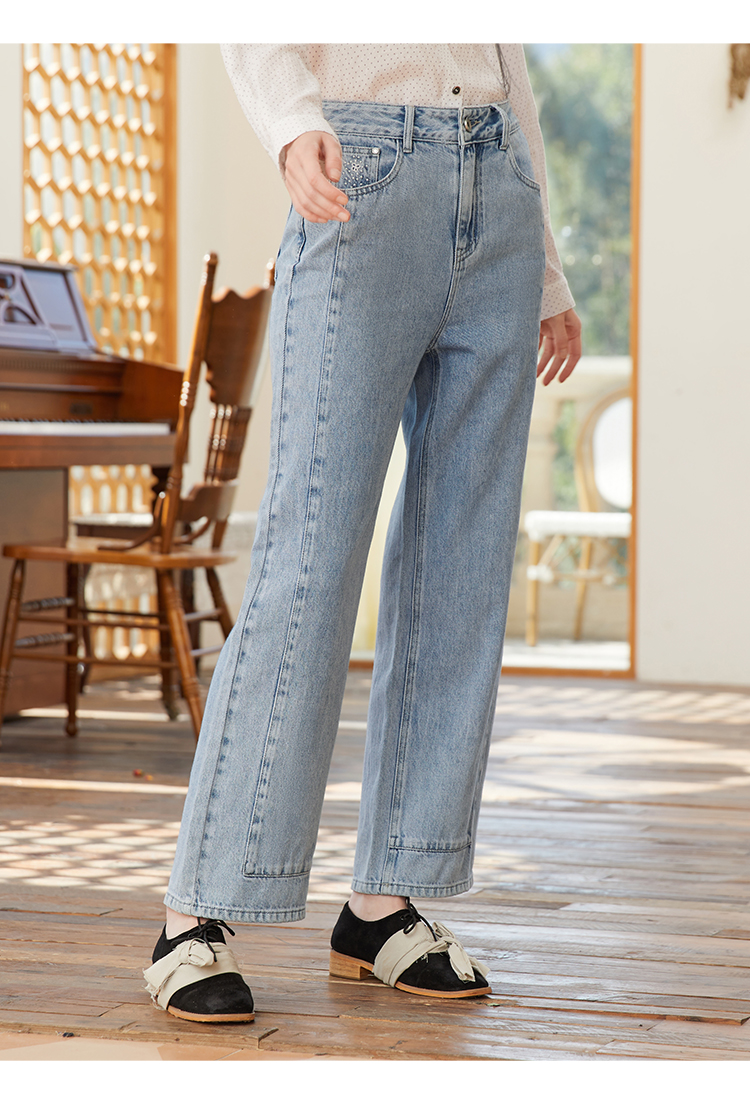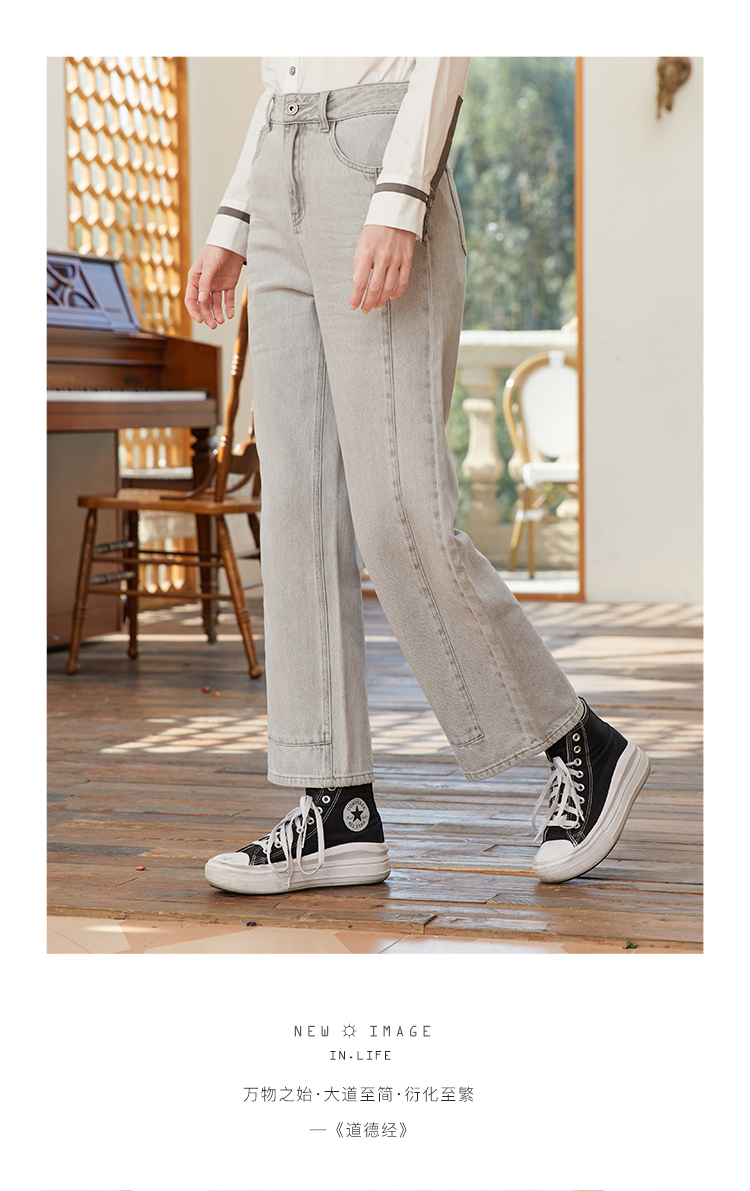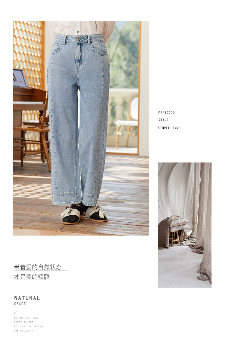 Famecoco范可儿浅色阔腿牛仔裤女季裤子小众设计感休闲FAB1GA014